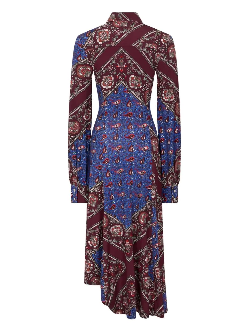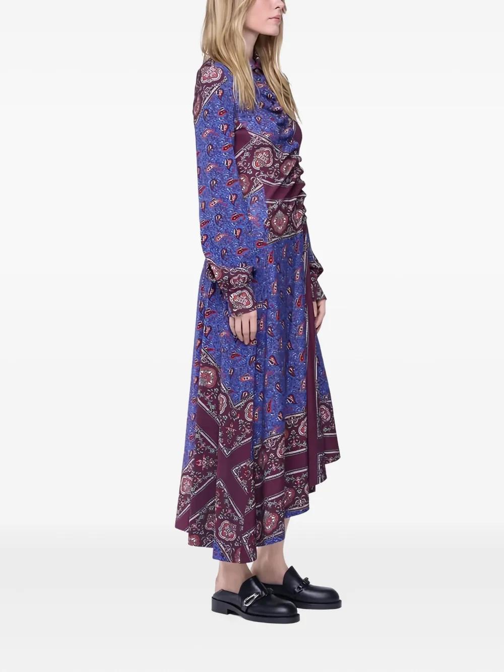 blue/purple paisley print ruched detailing press-stud fastening long sleeves asymmetric hem
