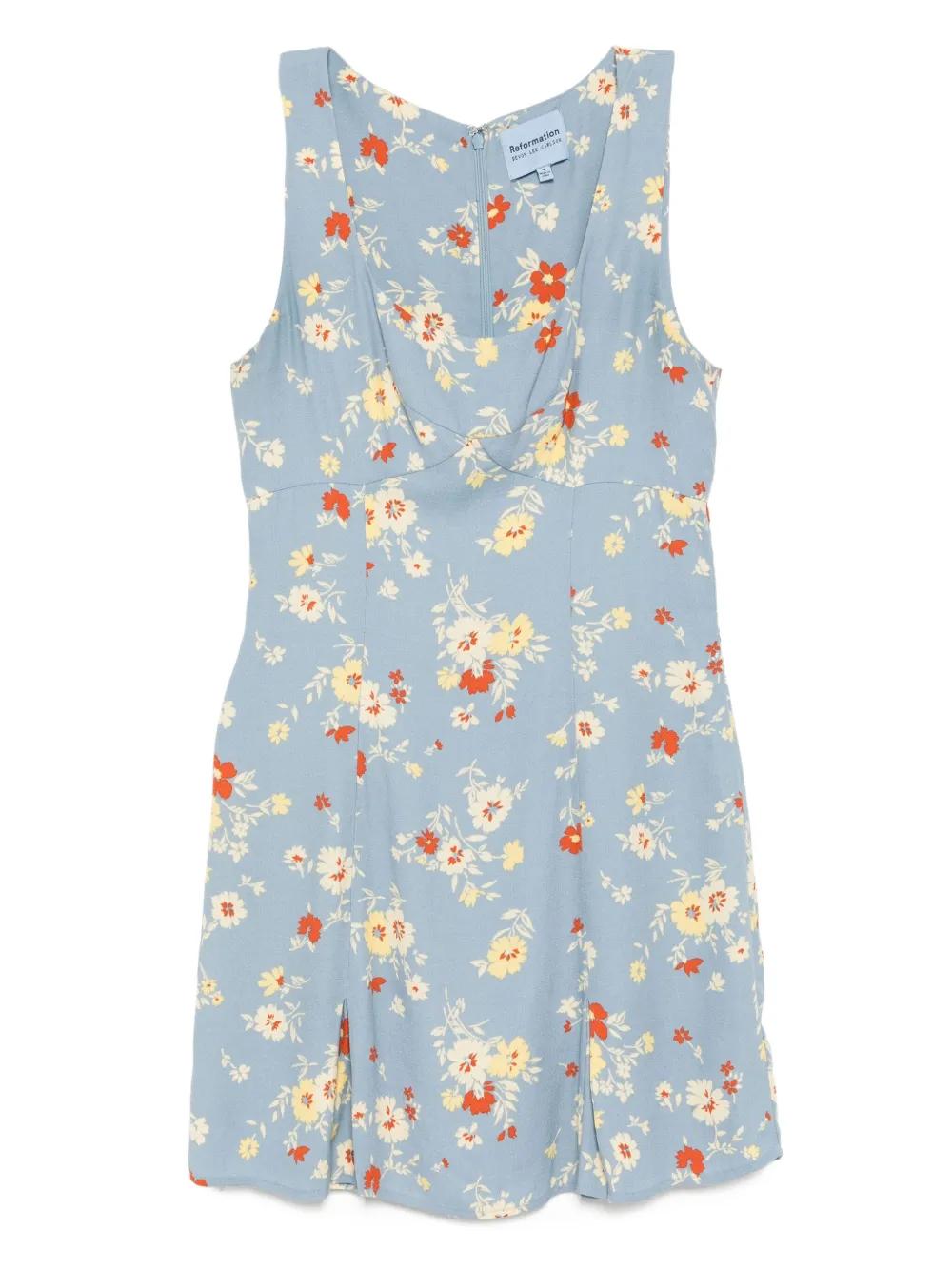 cornflower blue concealed rear hook and zip fastening dart detailing box-pleat detail