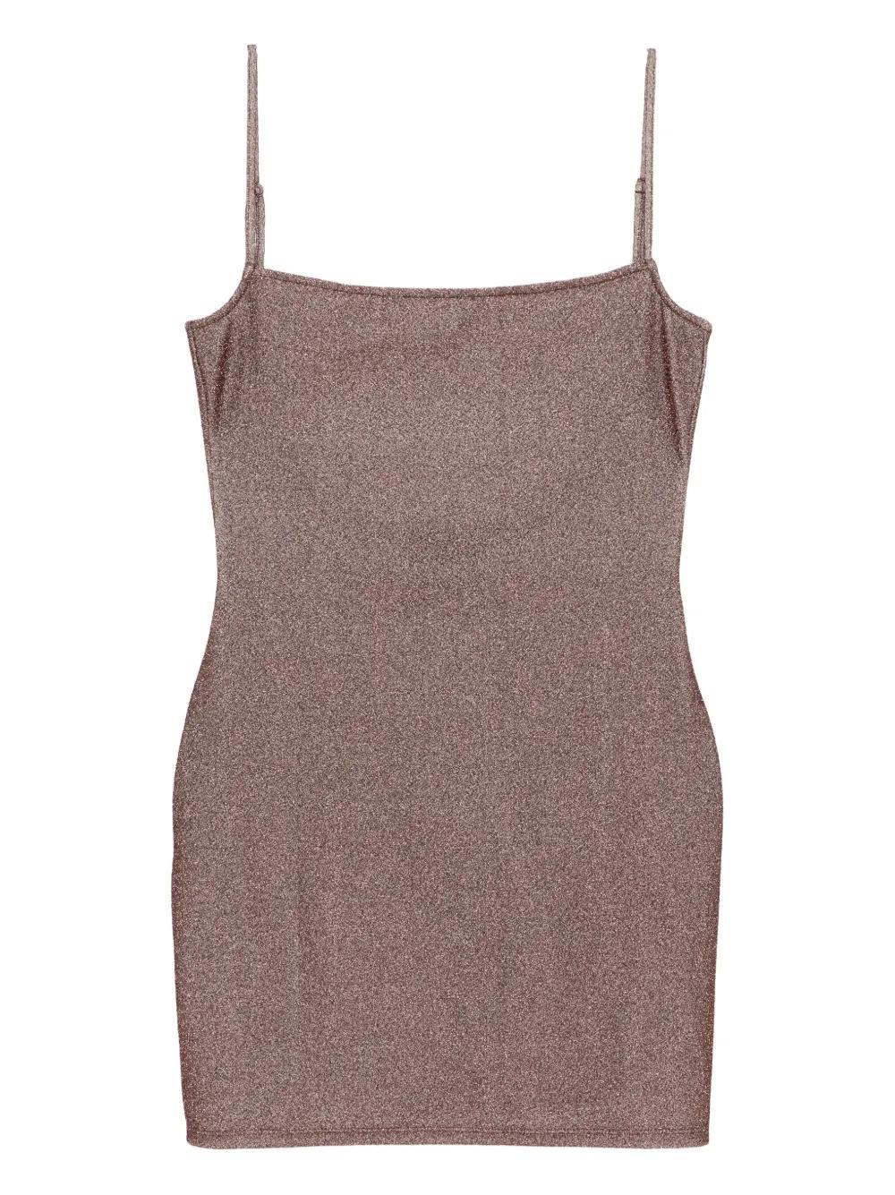 chestnut brown sleeveless two adjustable shoulder straps straight hem scoop back