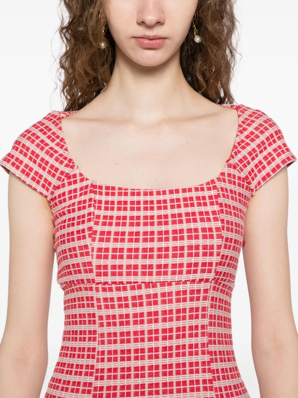 organic cotton blend chianti red knitted construction square neck straight hem
