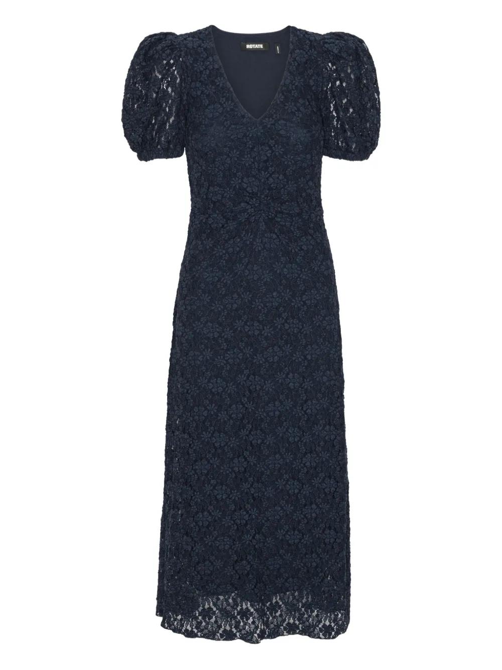 ROTATE BIRGER CHRISTENSEN puff-sleeve lace midi dress - Blue