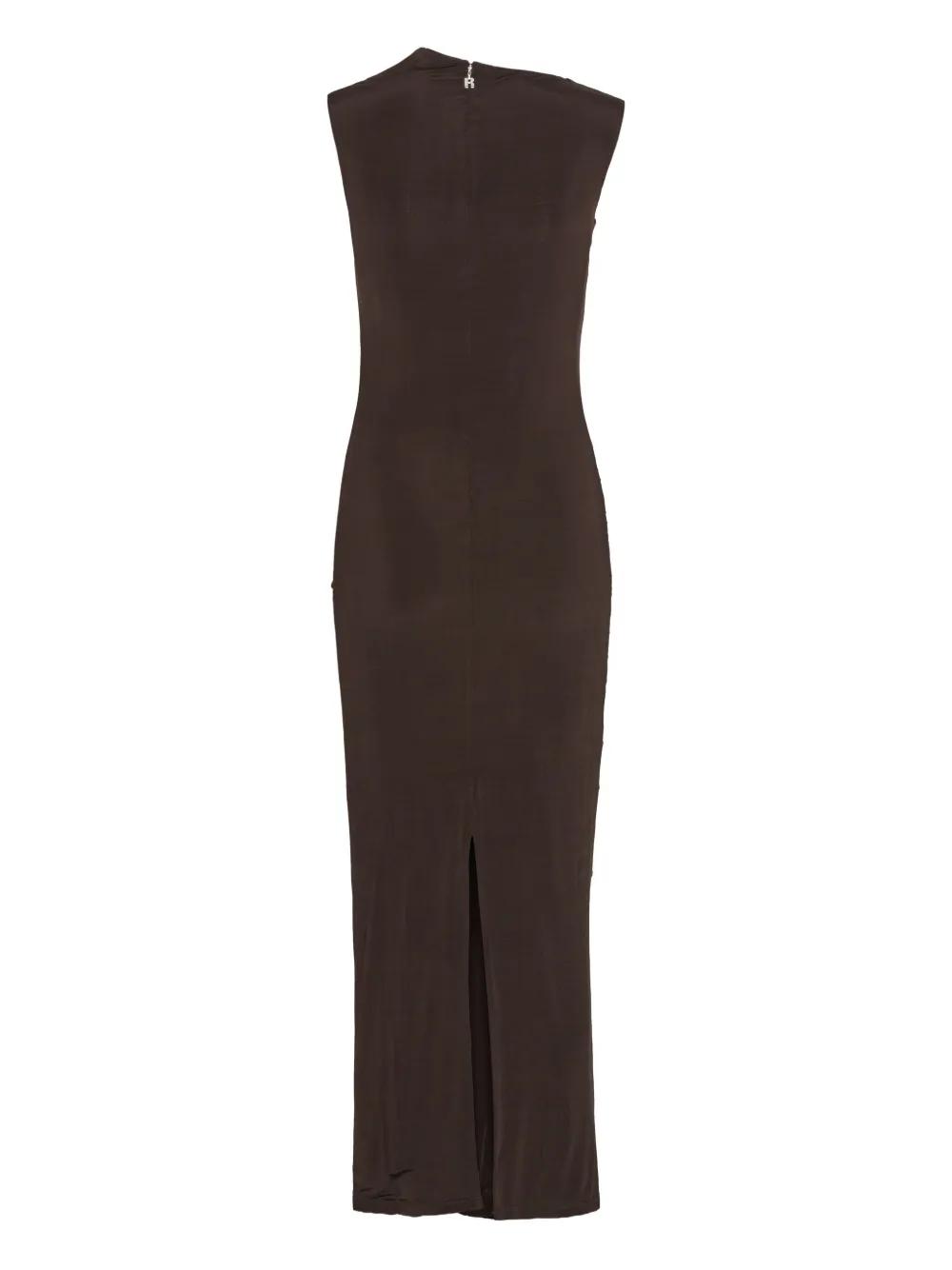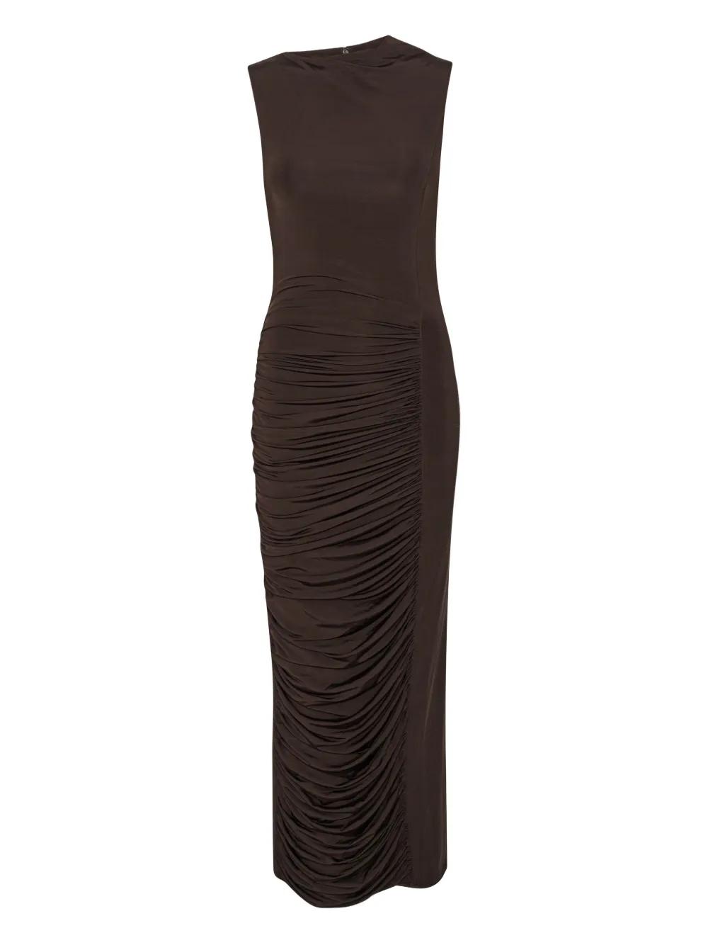 brown ruched detail midi length sleeveless back zip fastening back slit