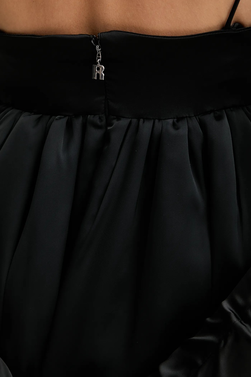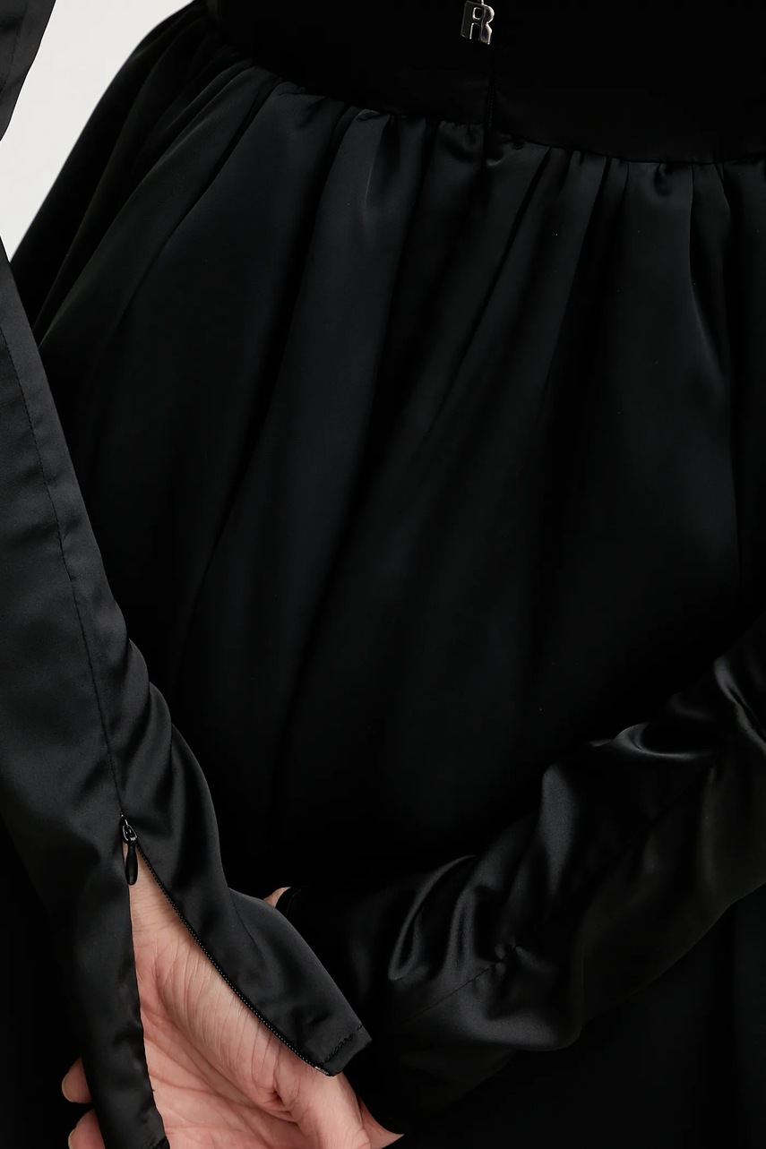 - Produkt zawiera materiały z włókien pochodzących z recyklingu. - Model z odpinanymi rękawami. - Rozkloszowany fason. - Suwaki u dołu rękawów. - Dodatkowa warstwa materiału w postaci podszewki. - Z tyłu zapięcie na kryty suwak i guzik. - Regulowane zapięcie na haftki. - Górna krawędź pokryta silikonem, który uniemożliwia zsuwanie się sukienki. - Nieregulowane, nieodpinane ramiączka. - Długość: 90 cm. - Szerokość pod pachami: 35 cm. - Szerokość w talii: 35 cm. - Wymiary podane dla rozmiaru: 36.