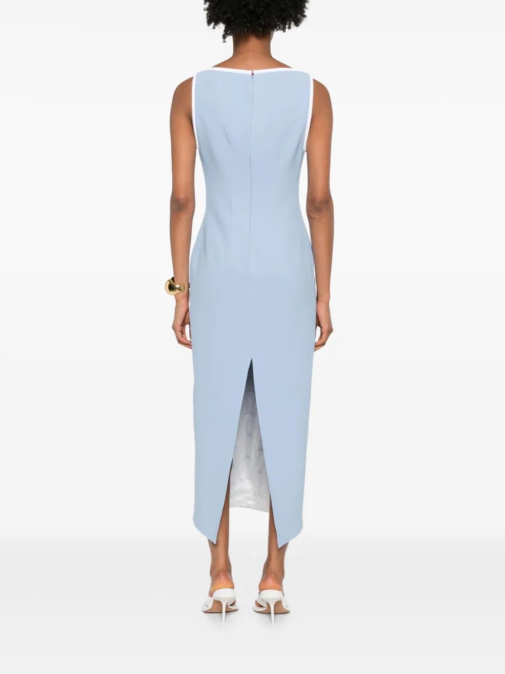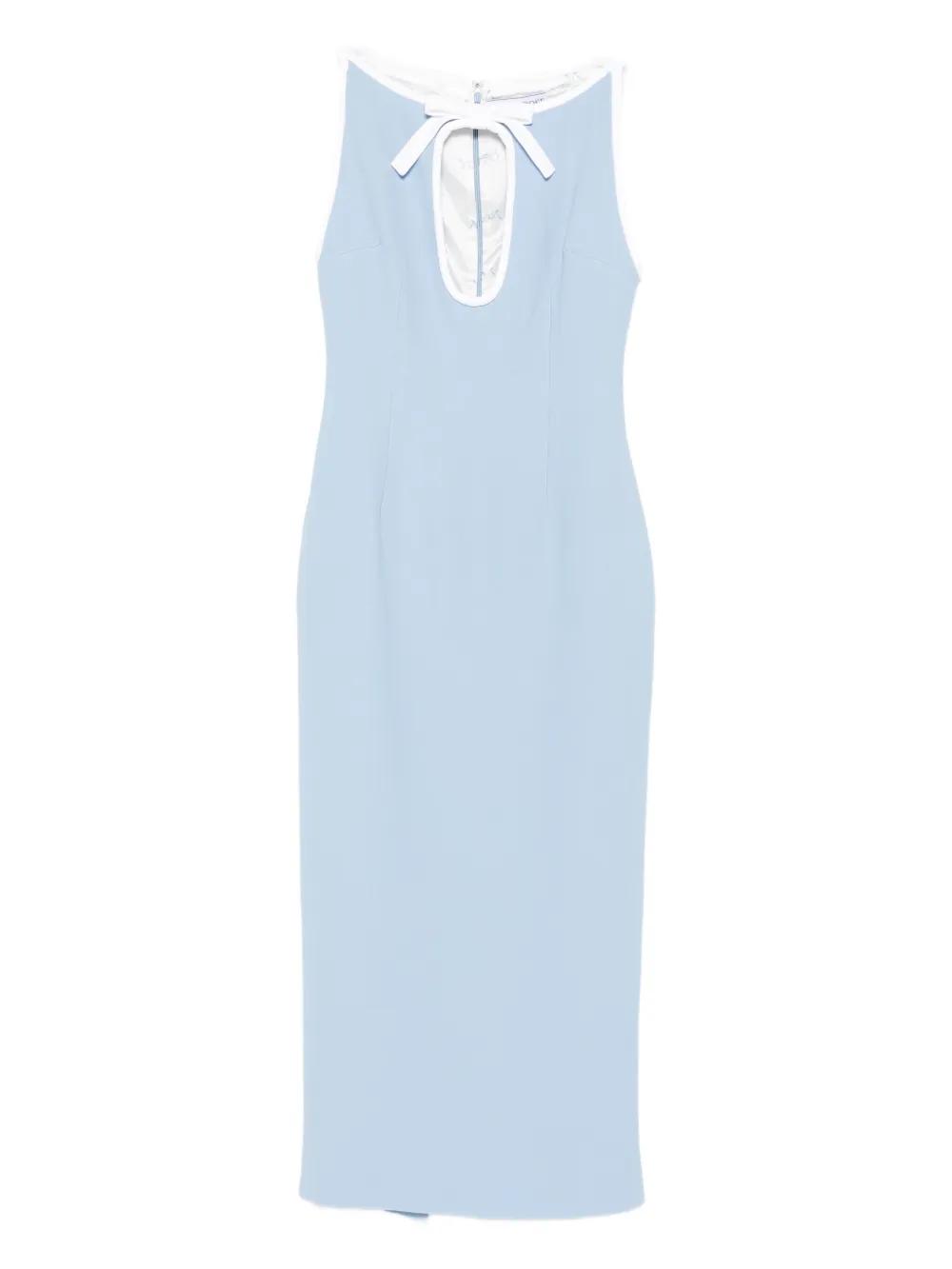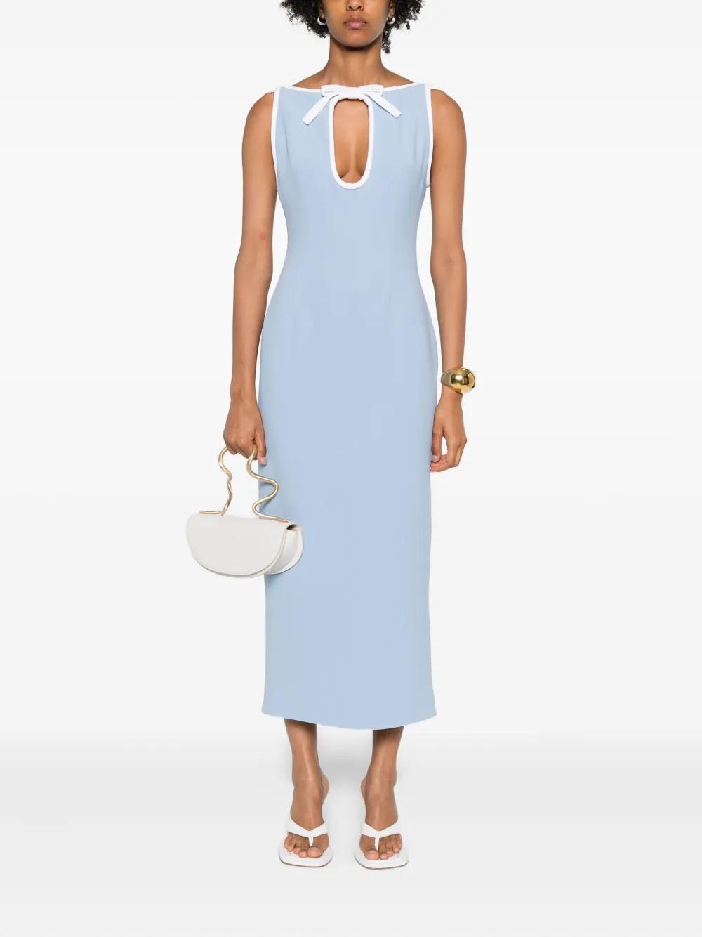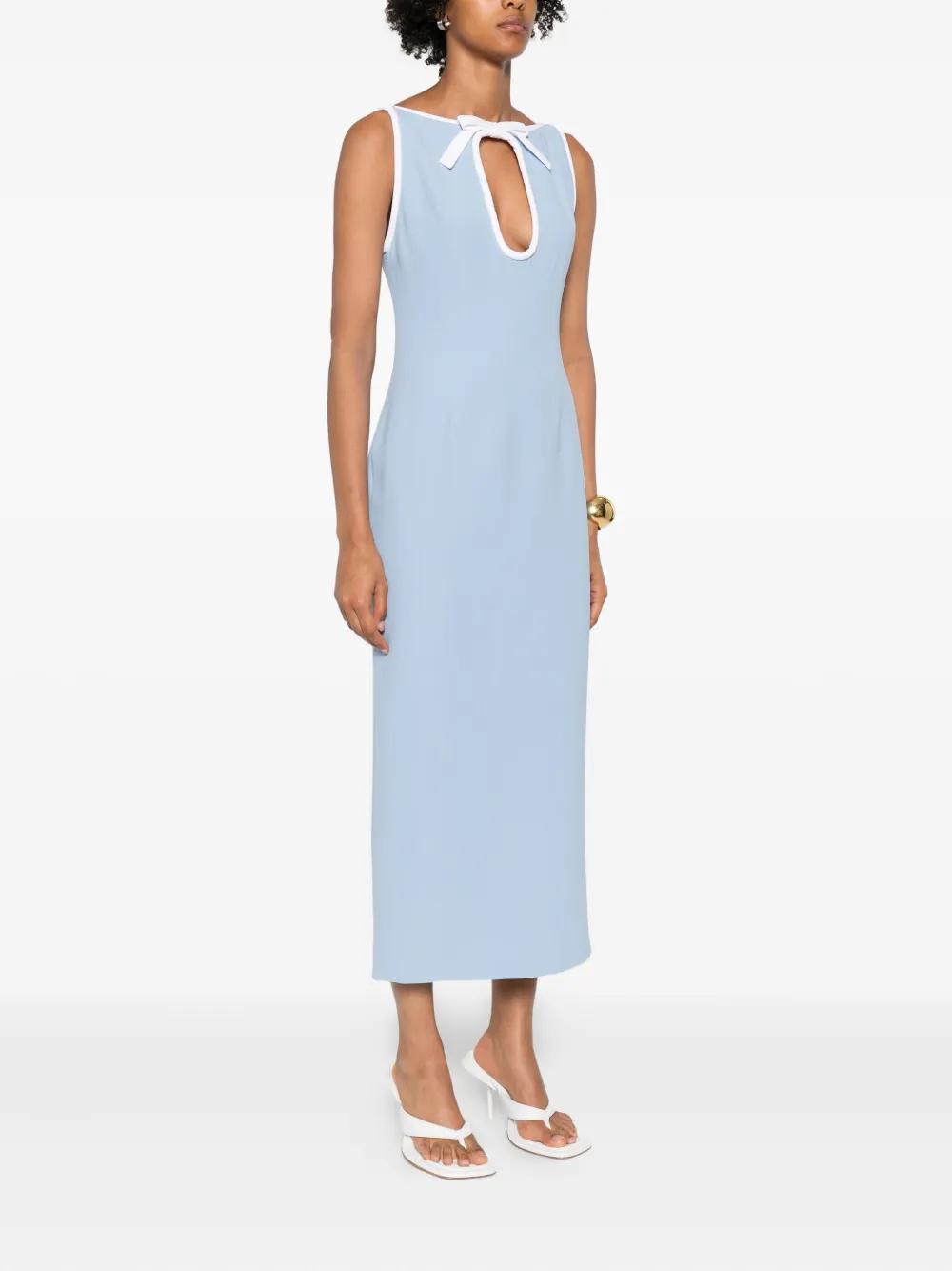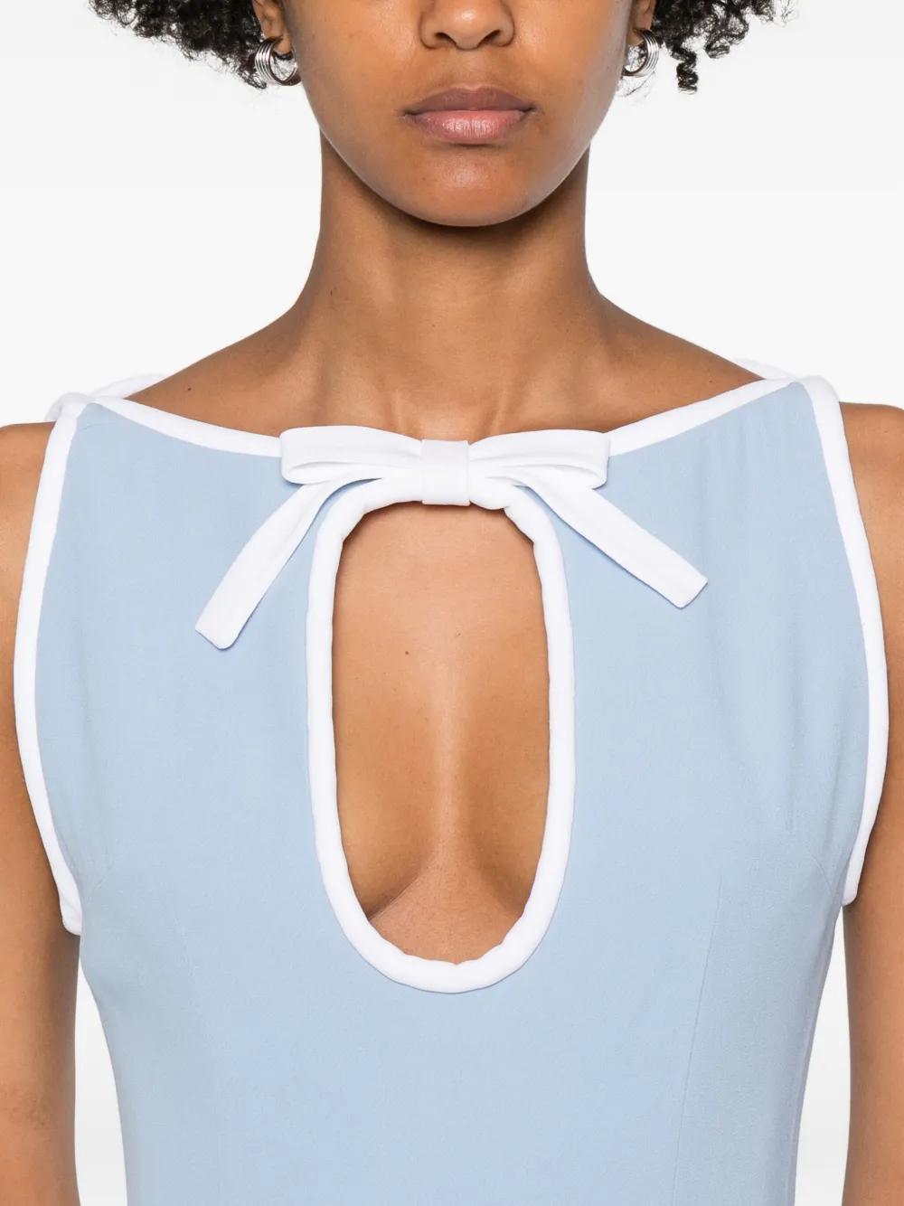 light blue sleeveless keyhole neck bow embellishment fitted waistline