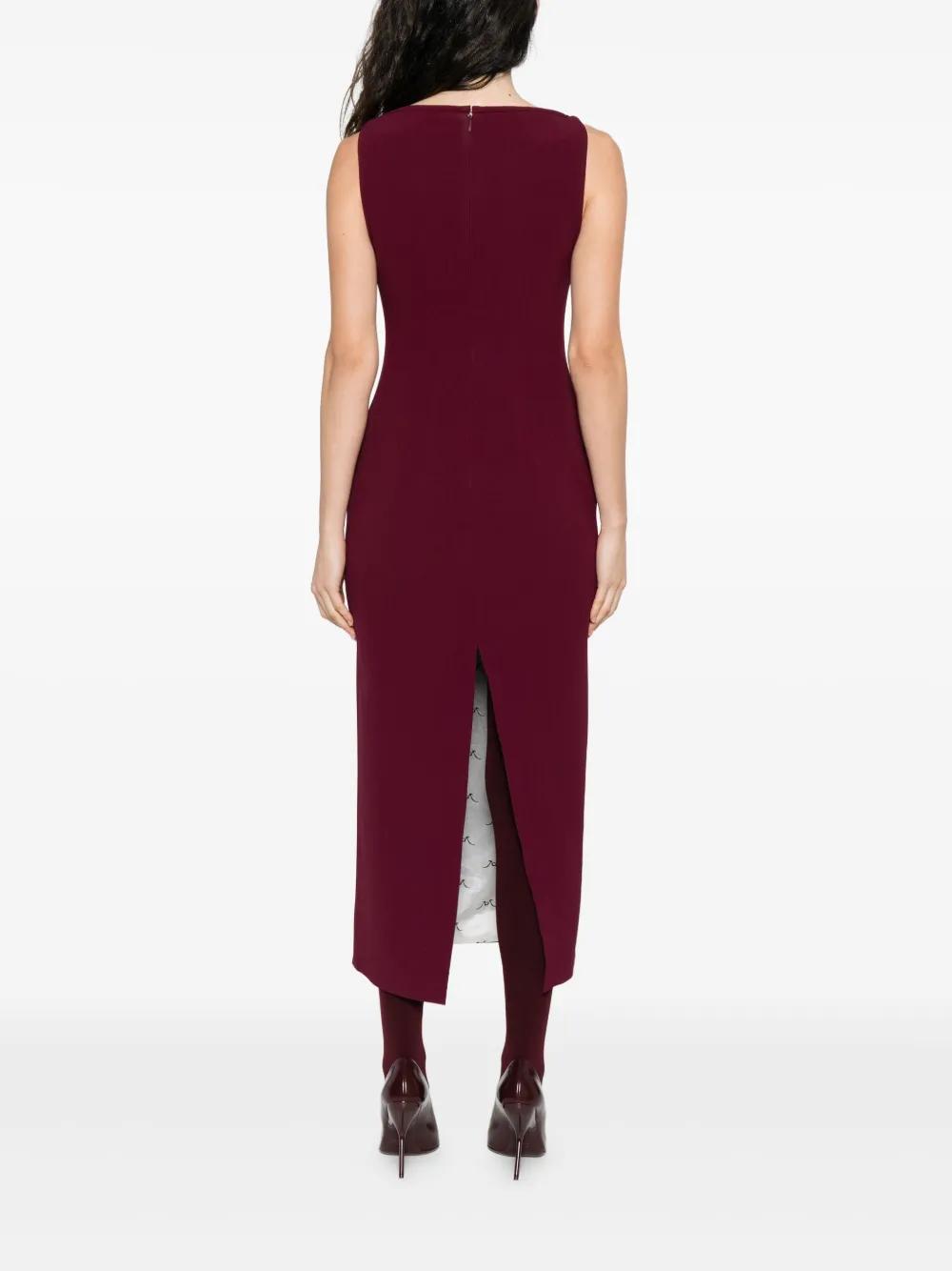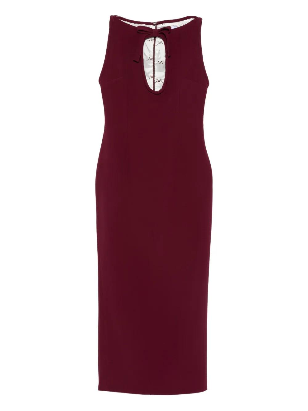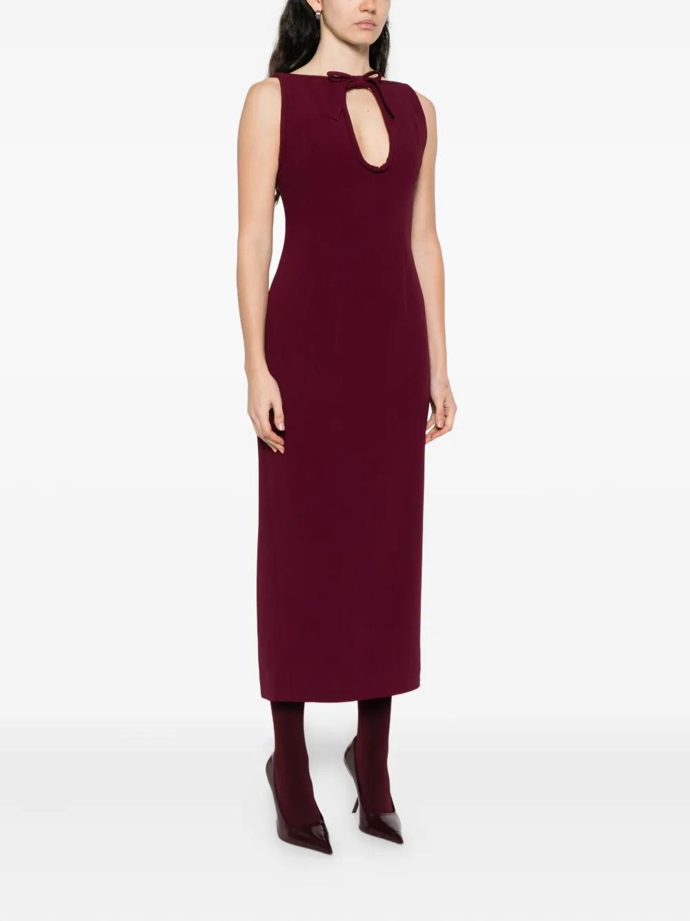 burgundy sleeveless design boat neckline keyhole detail back bow detail fitted shape