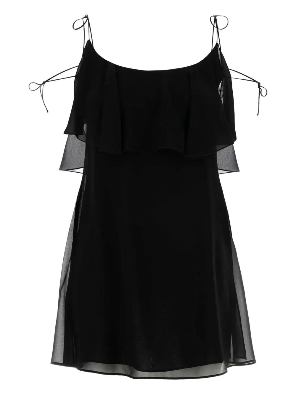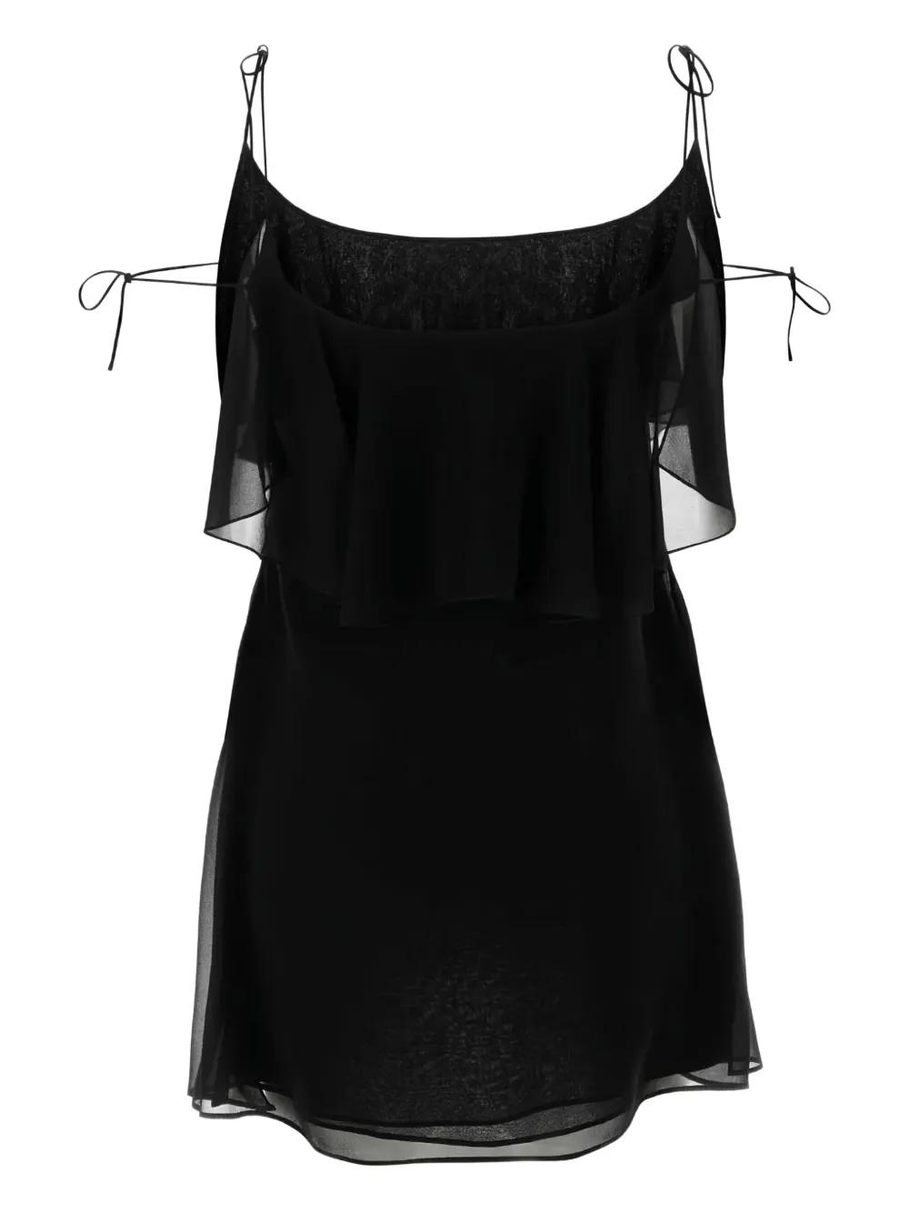 black ruffled detailing tie fastening spaghetti straps sleeveless sheer detailing