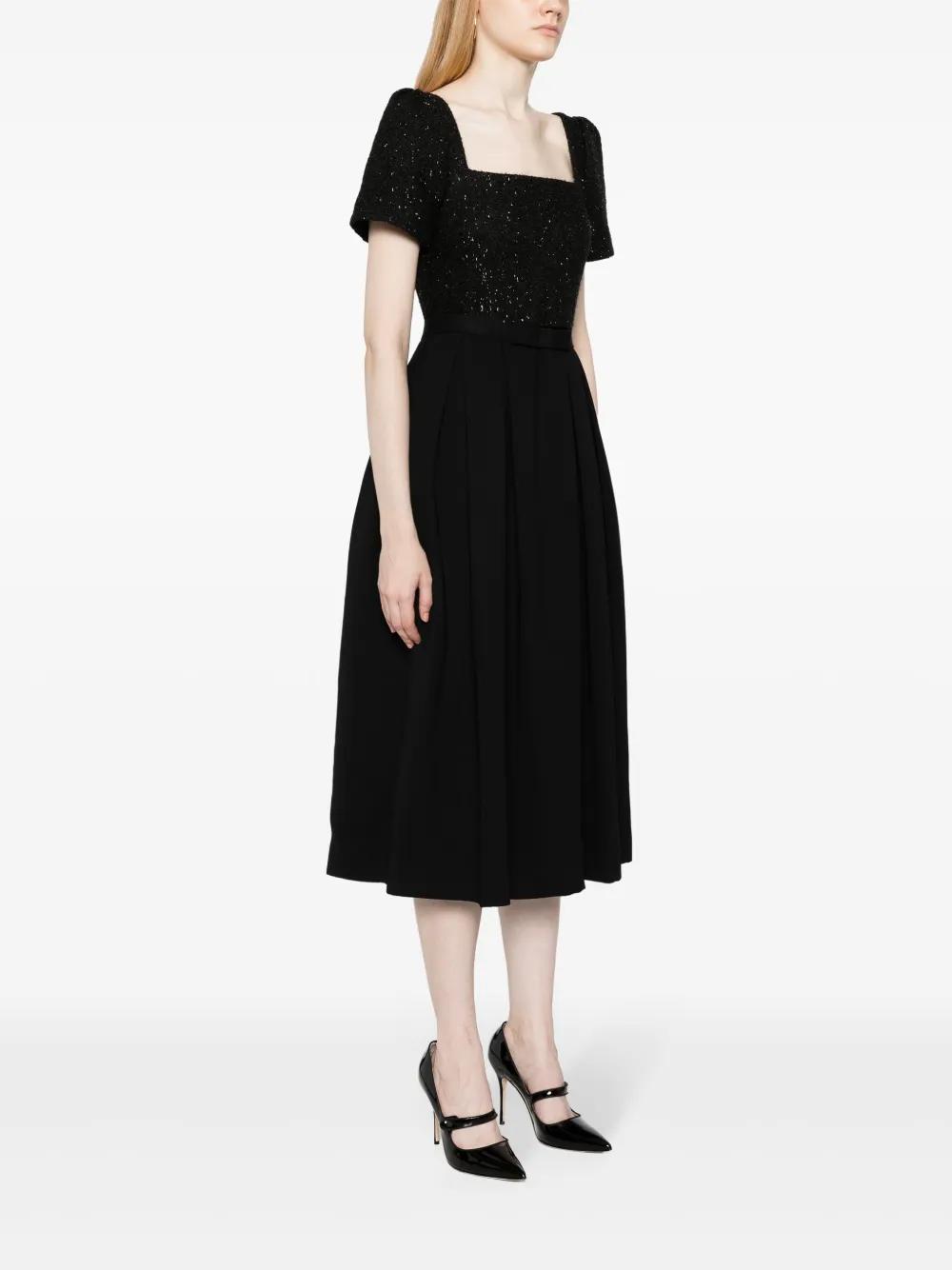 Self-Portrait bouclé-panel midi dress - Black