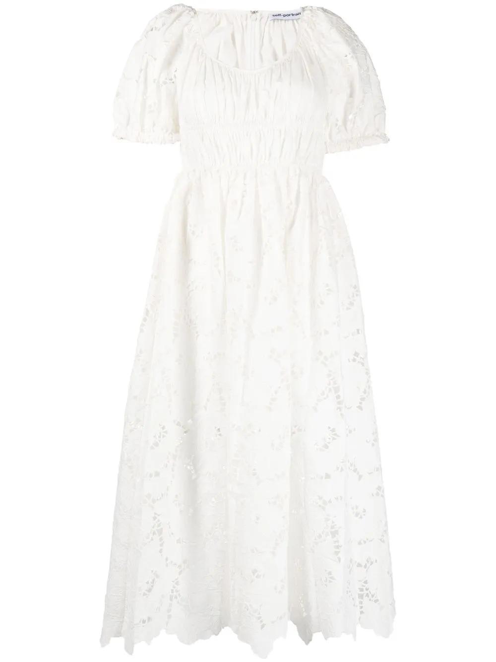 Self-Portrait flared lace midi dress - White
