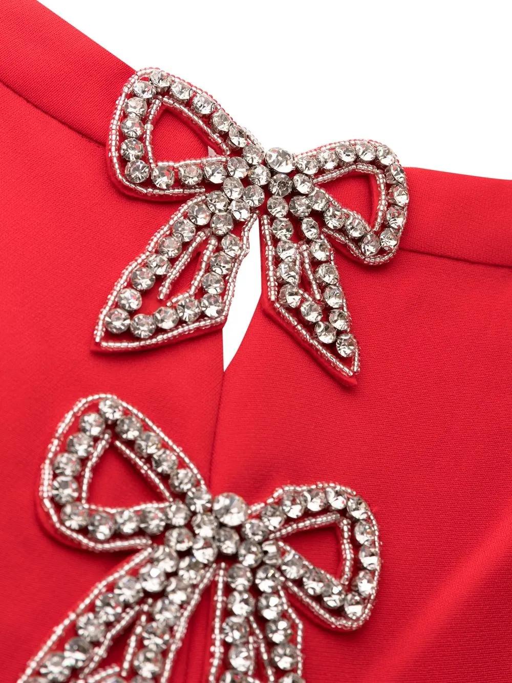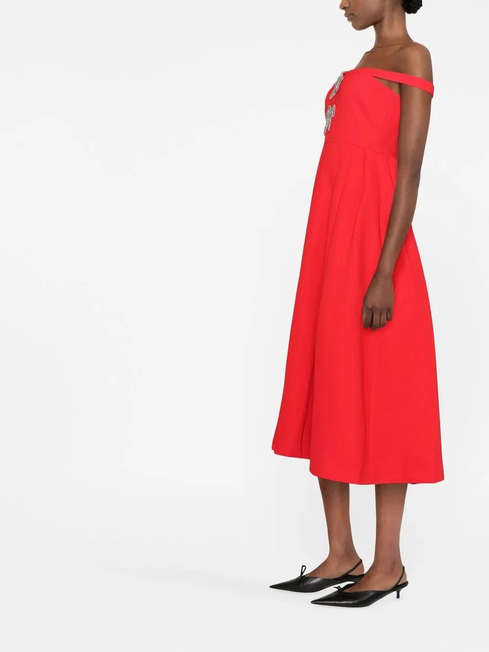 flame red bow detailing crystal embellishment off-shoulder rear zip fastening flared mid-length