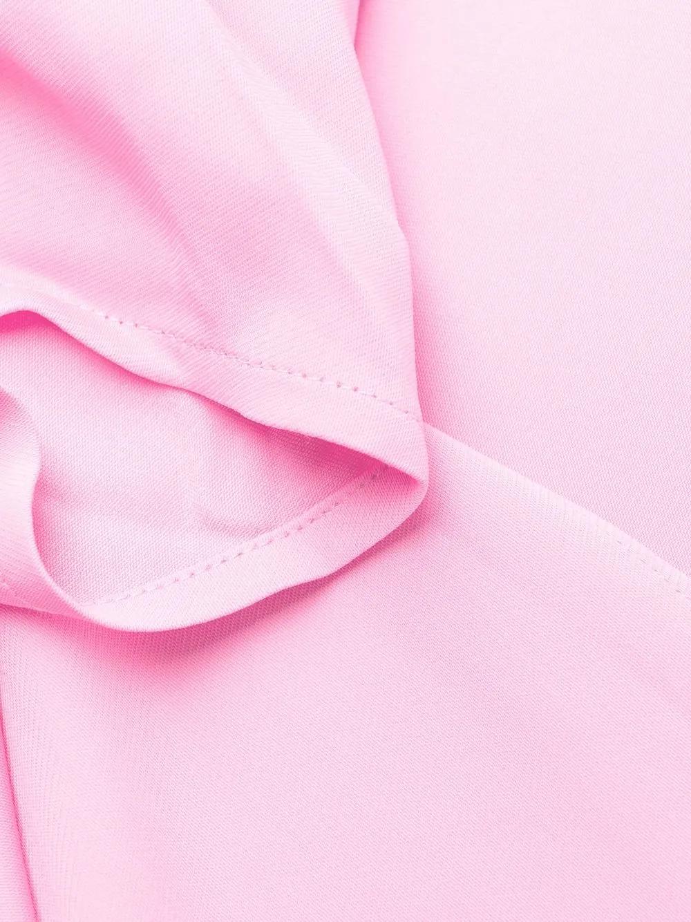 pink wrap design ruched detailing tonal stitching sweetheart neck short puff sleeves concealed rear zip fastening asymmetric hem mid-length