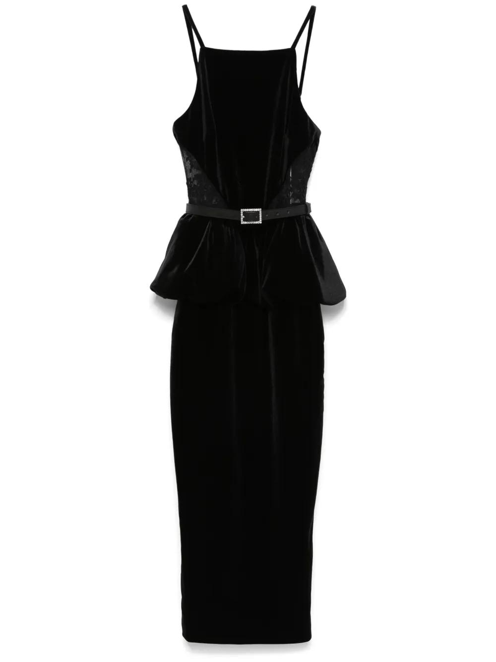 black concealed rear hook and zip fastening rear slit square neck lace panelling