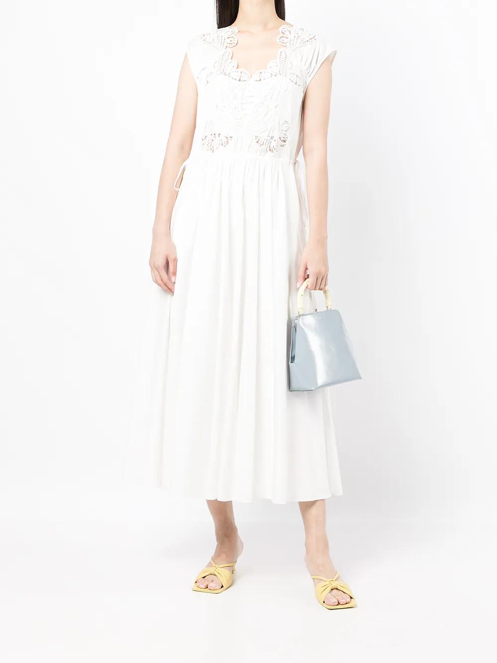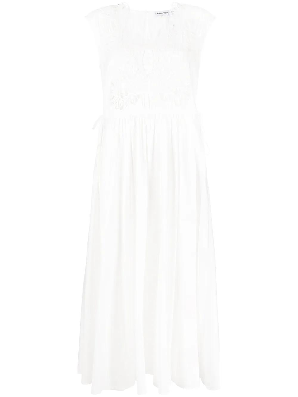 Self-Portrait White Macrame Lace Organic Cotton Dress