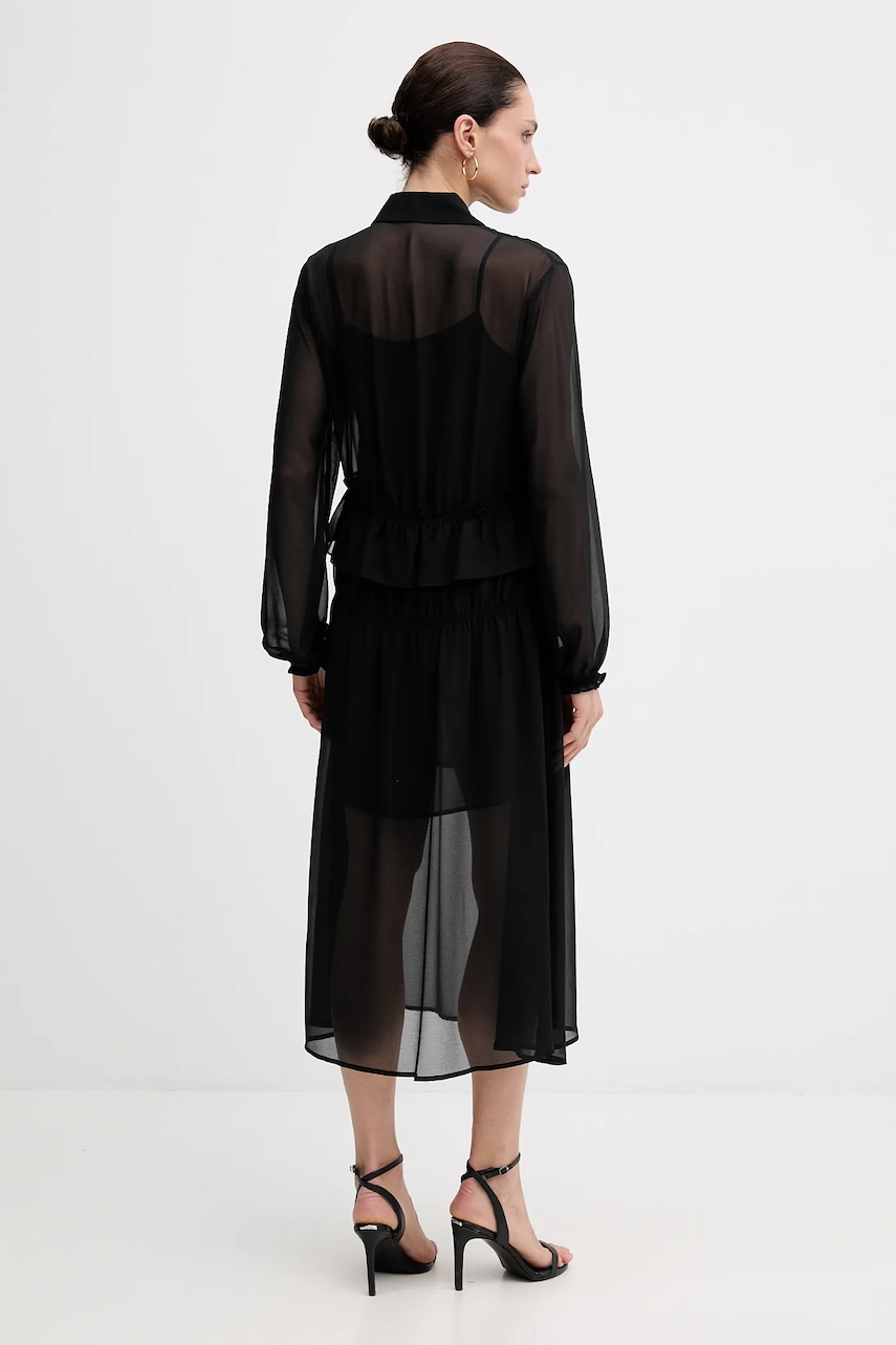 - Ten produkt został częściowo uszyty z poliestru pochodzącego z recyklingu. - Model o długości midi. - Rozkloszowany fason. - Model z halką. - Długie rękawy. - Model z kołnierzykiem. - Zapięcie na guziki. - Rękawy wykończone elastyczną gumką. - Elastyczna gumka w pasie. - Długość rękawa: 59 cm. - Długość: 115 cm. - Szerokość pod pachami: 45 cm. - Wymiary podane dla rozmiaru: 40.