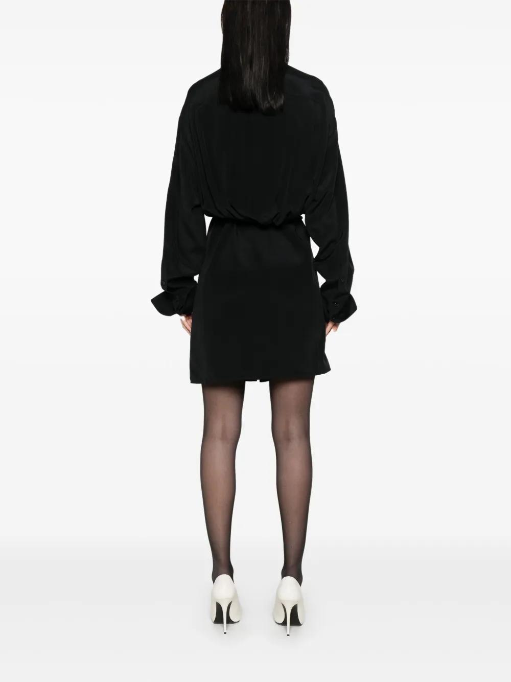 black concealed front button fastening buttoned cuffs belted waist gathered detailing