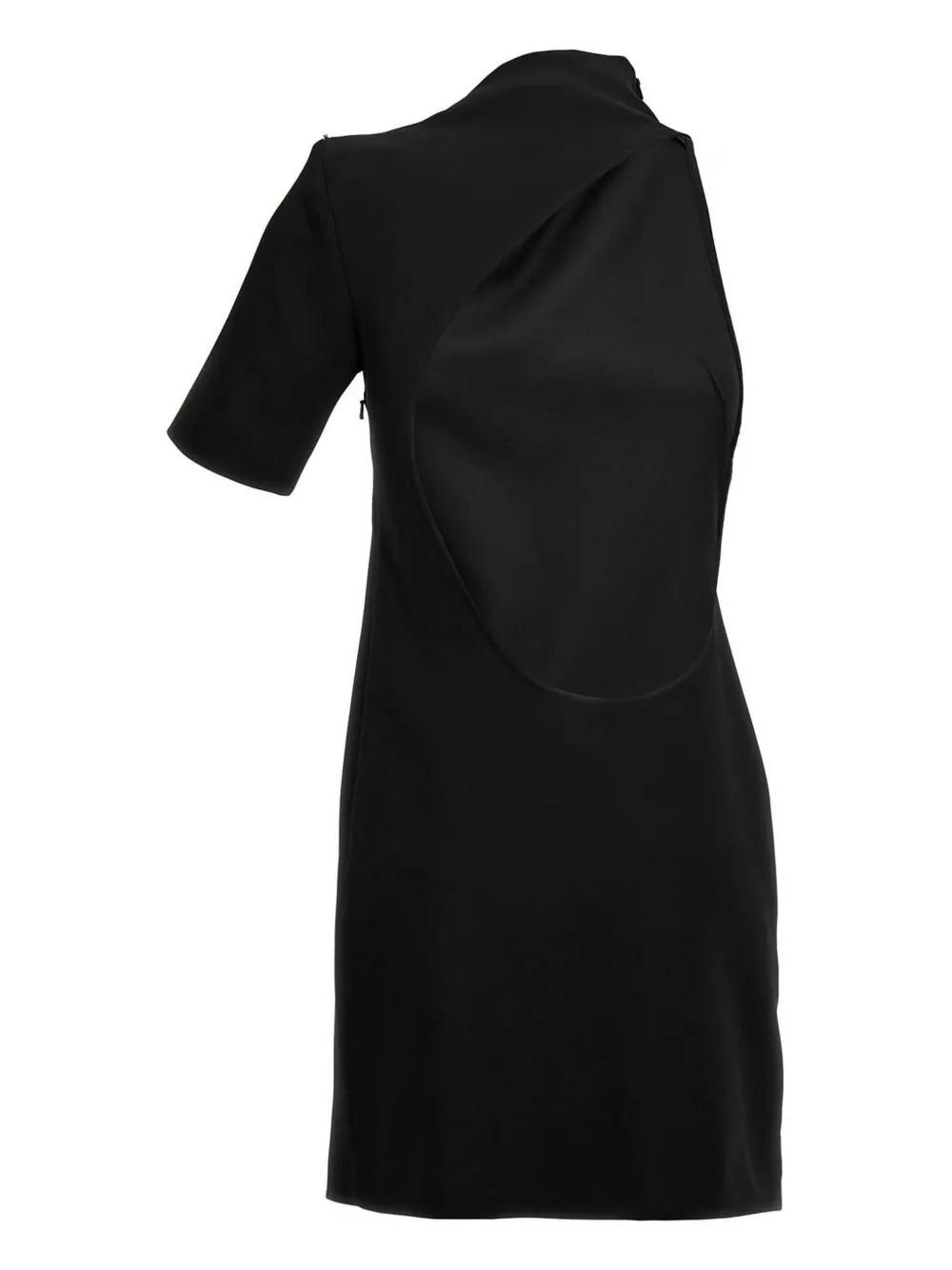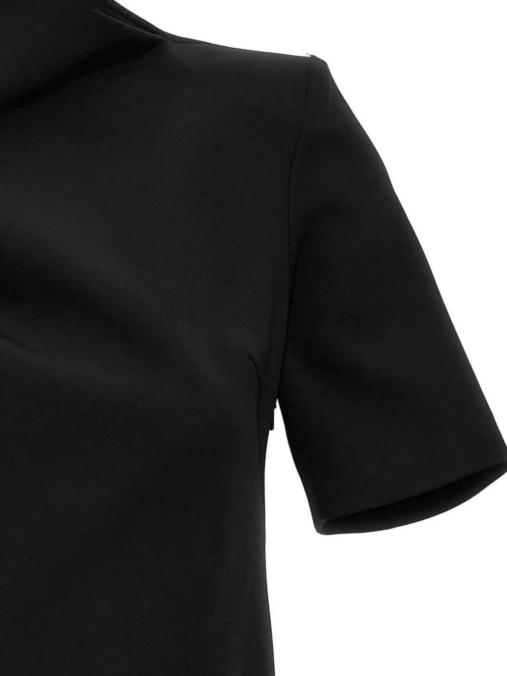 black side zip fastening asymmetric design short sleeves straight hem