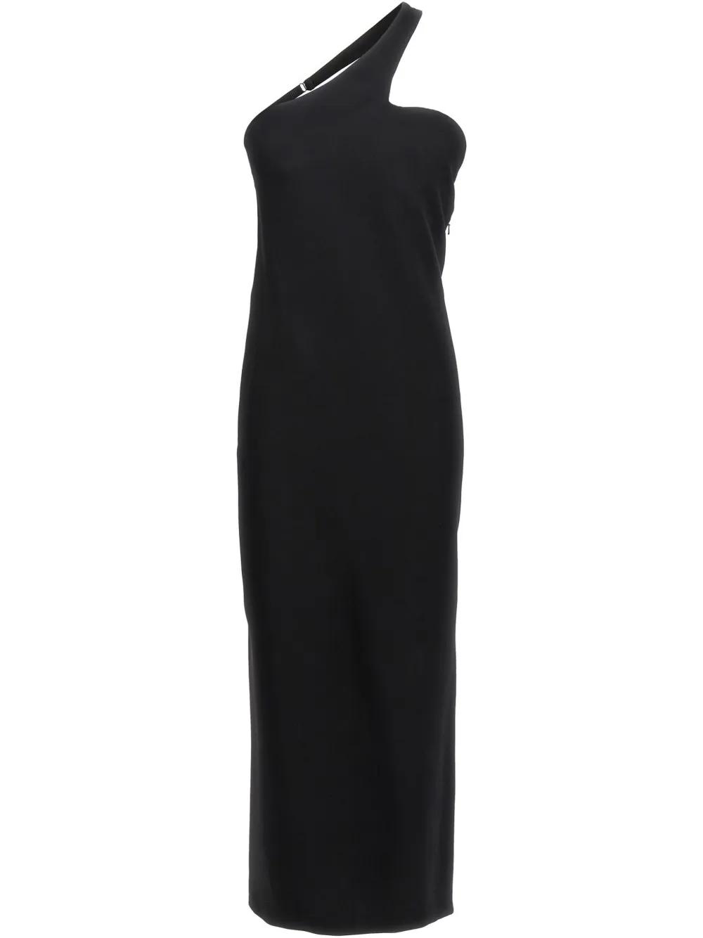 brown wool one-shoulder neckline long sleeves ribbed detailing side slit