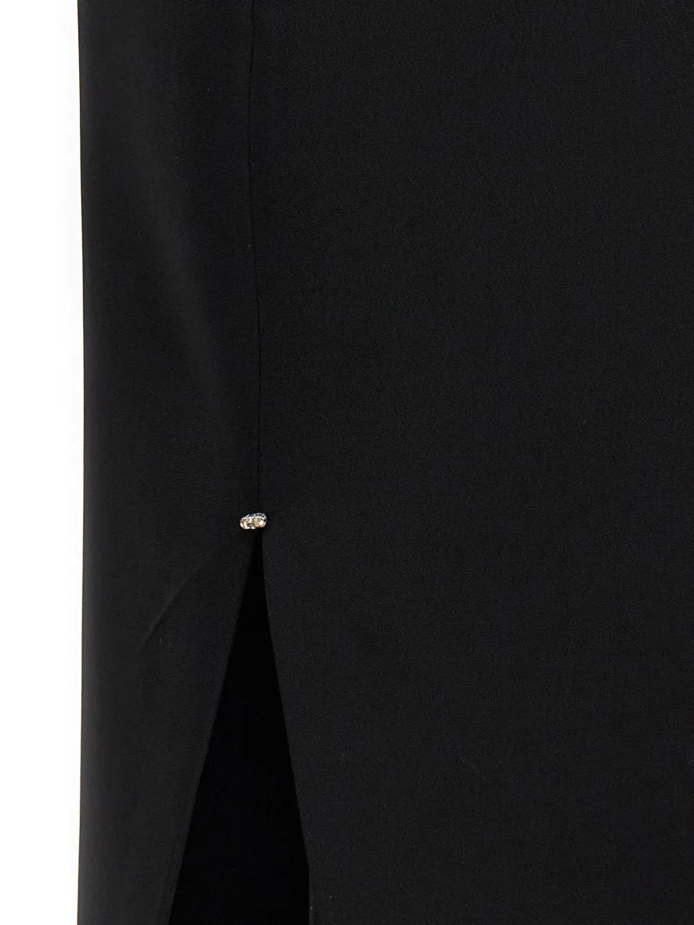 black cut-out detailing round neck fitted waistline above-knee length rear zip fastening long sleeves straight hem