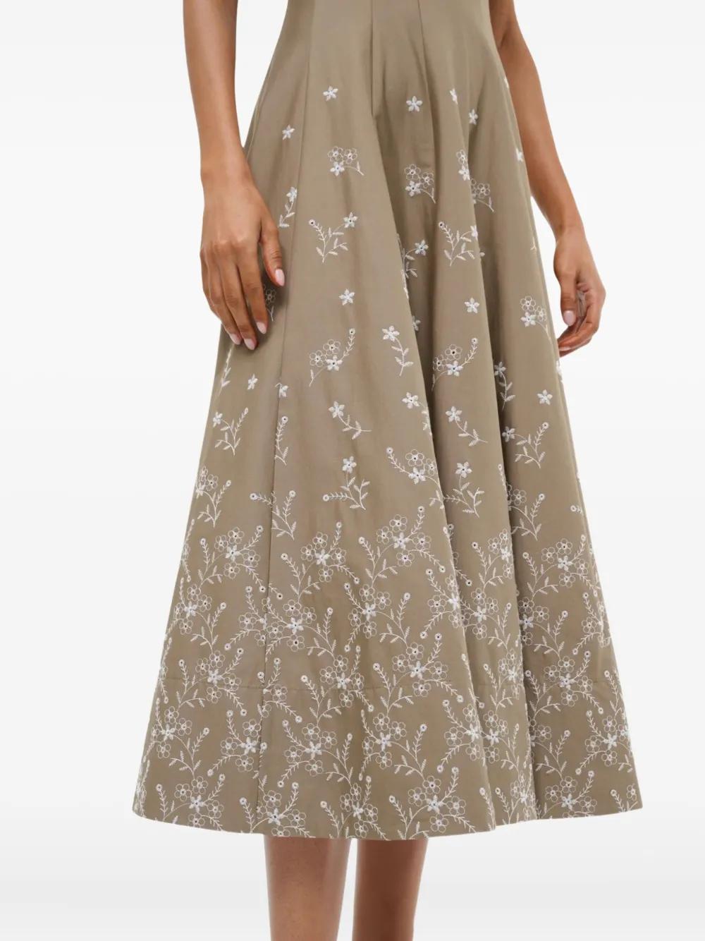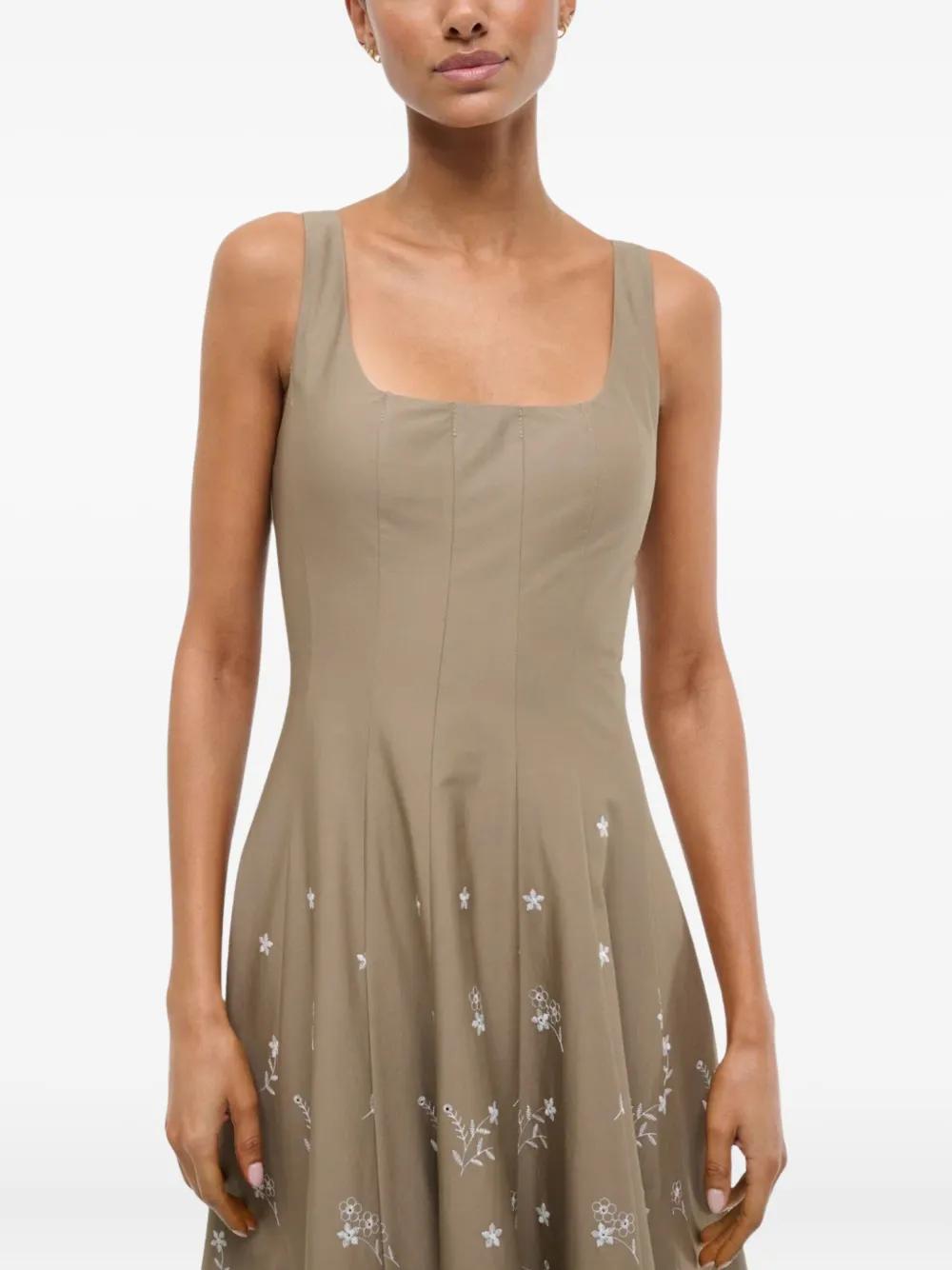 taupe brown floral embroidery square neck sleeveless zip fastening panelled construction