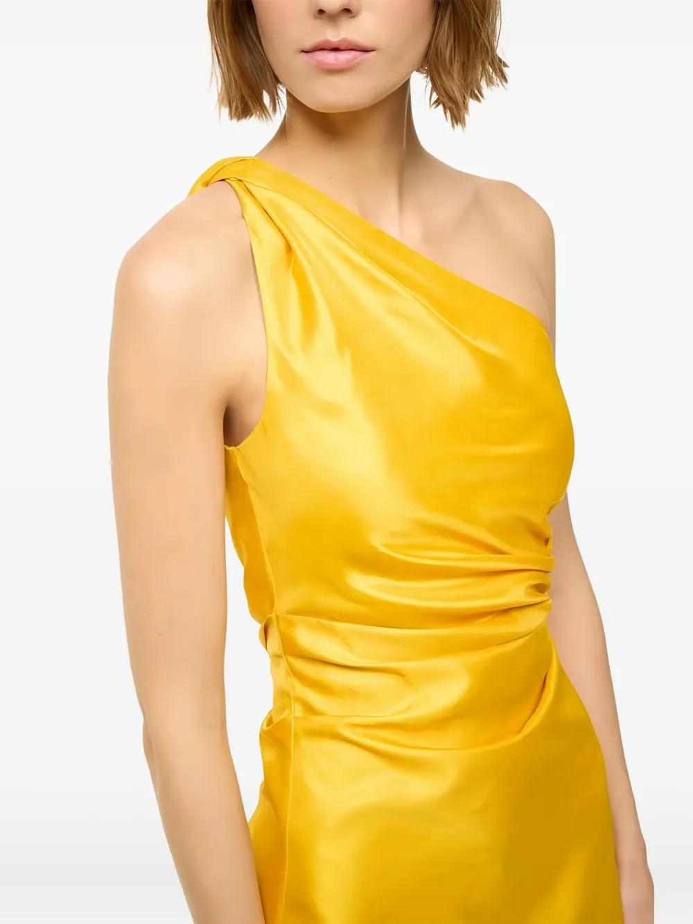 yellow one-shoulder design gathered detail sleeveless A-line shape