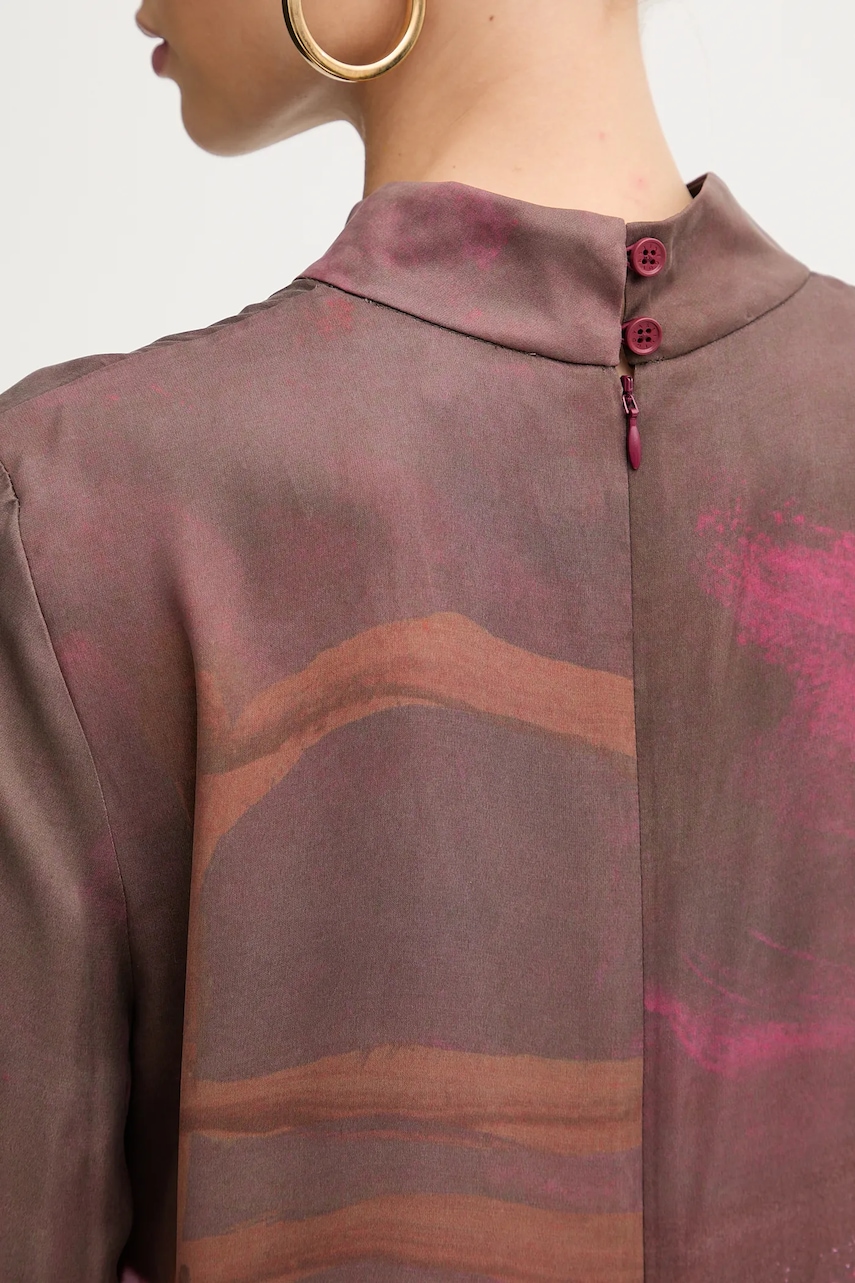 - Model częściowo wykonany z włókien Lyocell TENCEL wytwarzanych z celulozy z drzew uprawianych w certyfikowanych lasach. - Prosty, nie blokujący ruchów fason. - Model ze stójką. - Zapięcie na kryty suwak i guziki. - Cienka, nieelastyczna tkanina. - Długość rękawa: 64 cm. - Szerokość pod pachami: 48 cm. - Długość: 125 cm. - Wymiary podane dla rozmiaru: S.