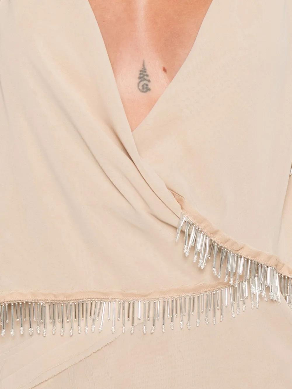 light beige rear zip fastening adjustable spaghetti straps gathered detailing crystal embellishment