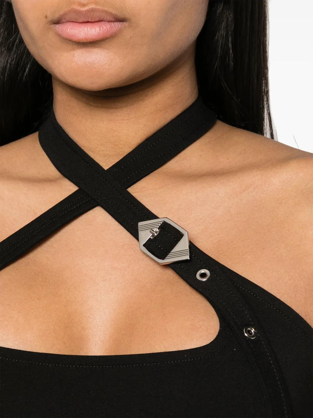 The Attico decorative-buckle halterneck dress - Black