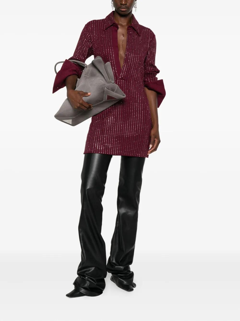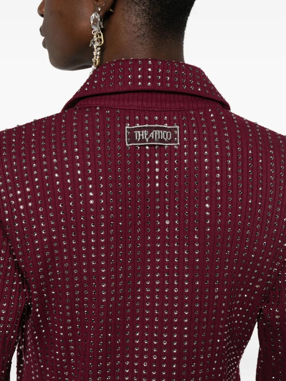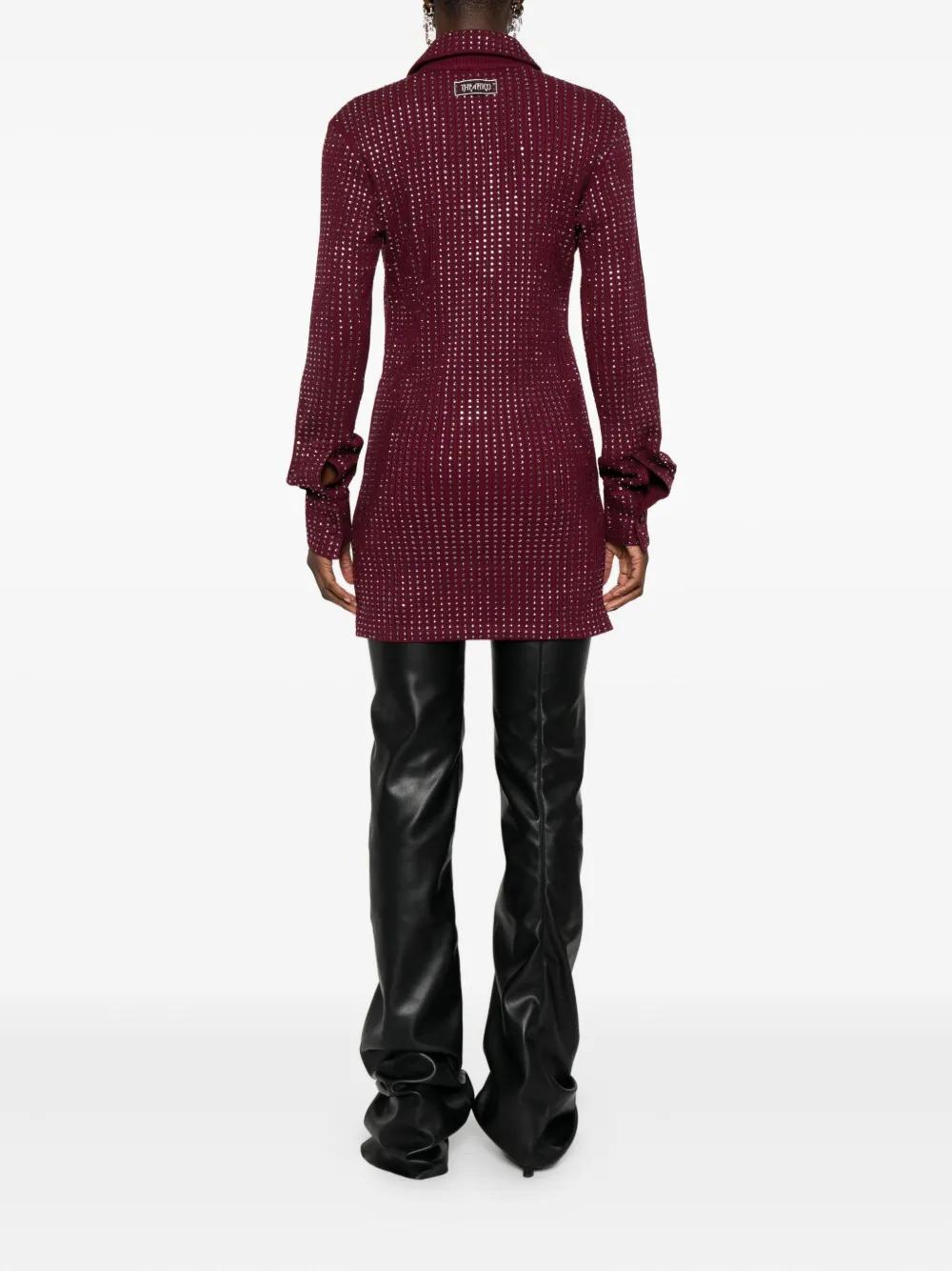 burgundy crystal embellishment collared neckline long sleeves straight hemline