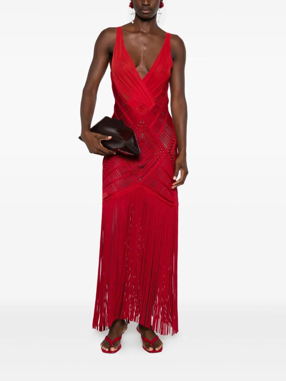 The Attico fringed midi dress - Red