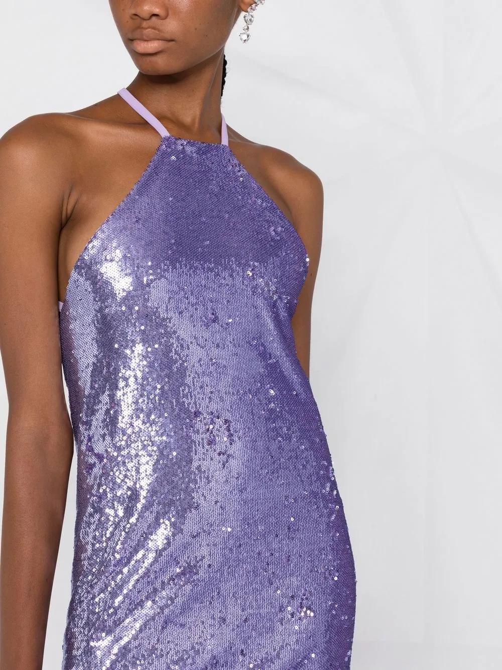 lilac purple square neck open back spaghetti straps rear buckle fastening thigh-length