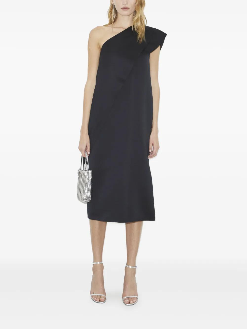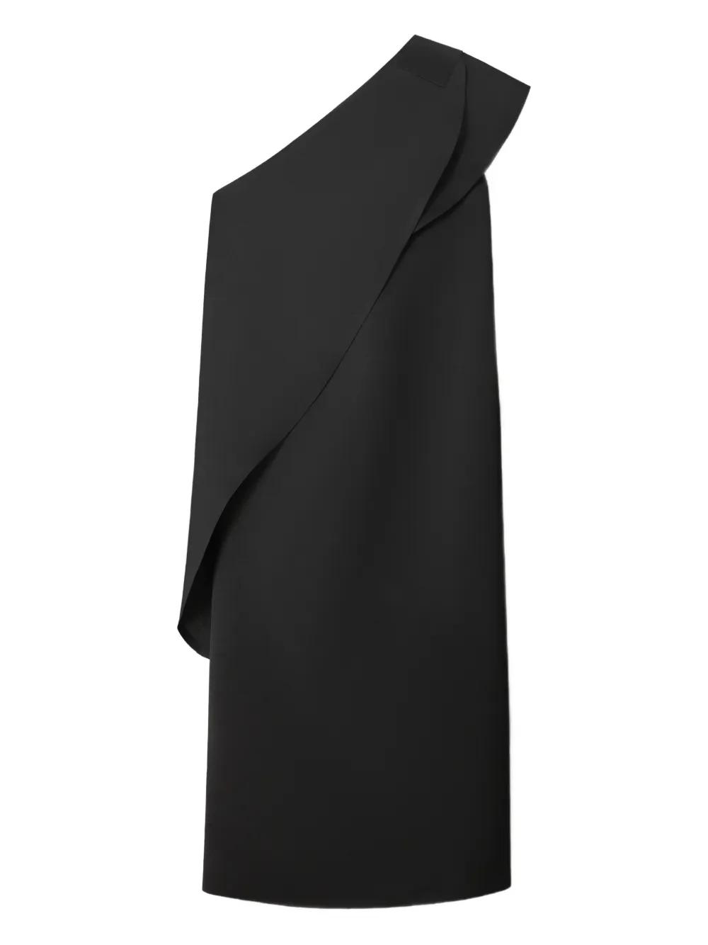 black one-shoulder cape detail midi length sleeveless