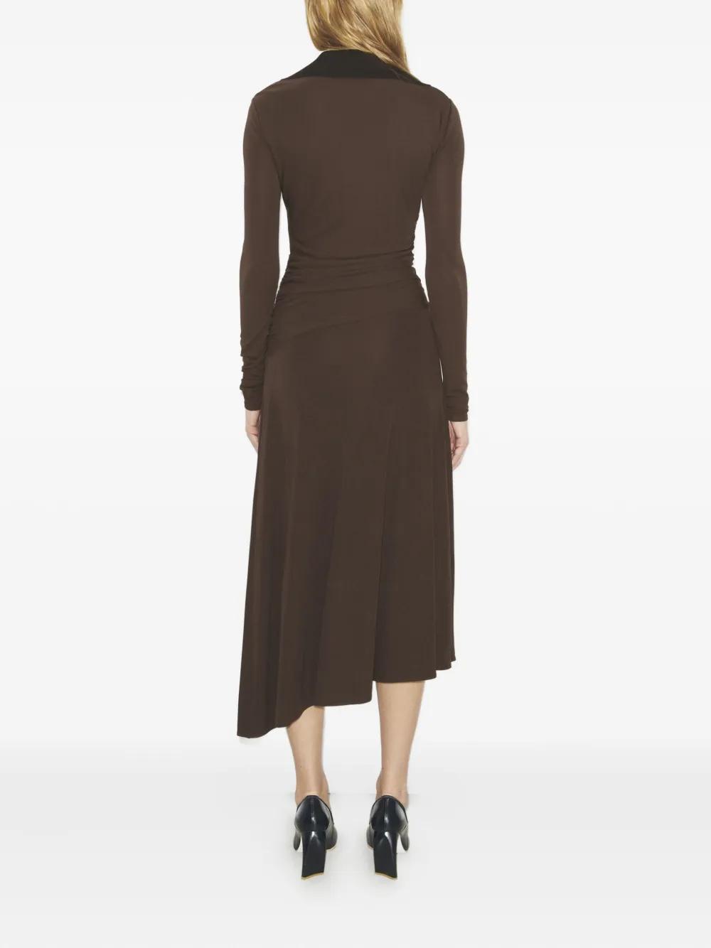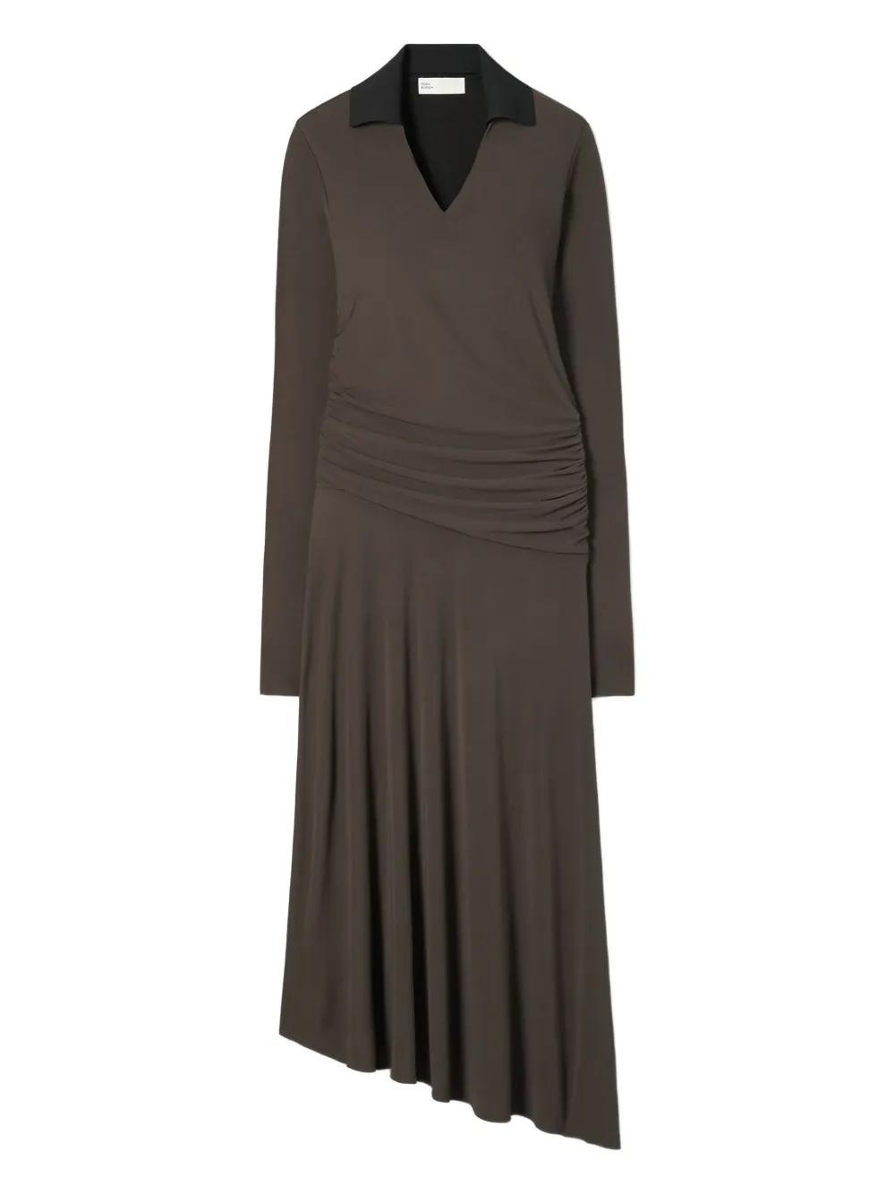 Tory Burch ruched asymmetric midi dress - Brown