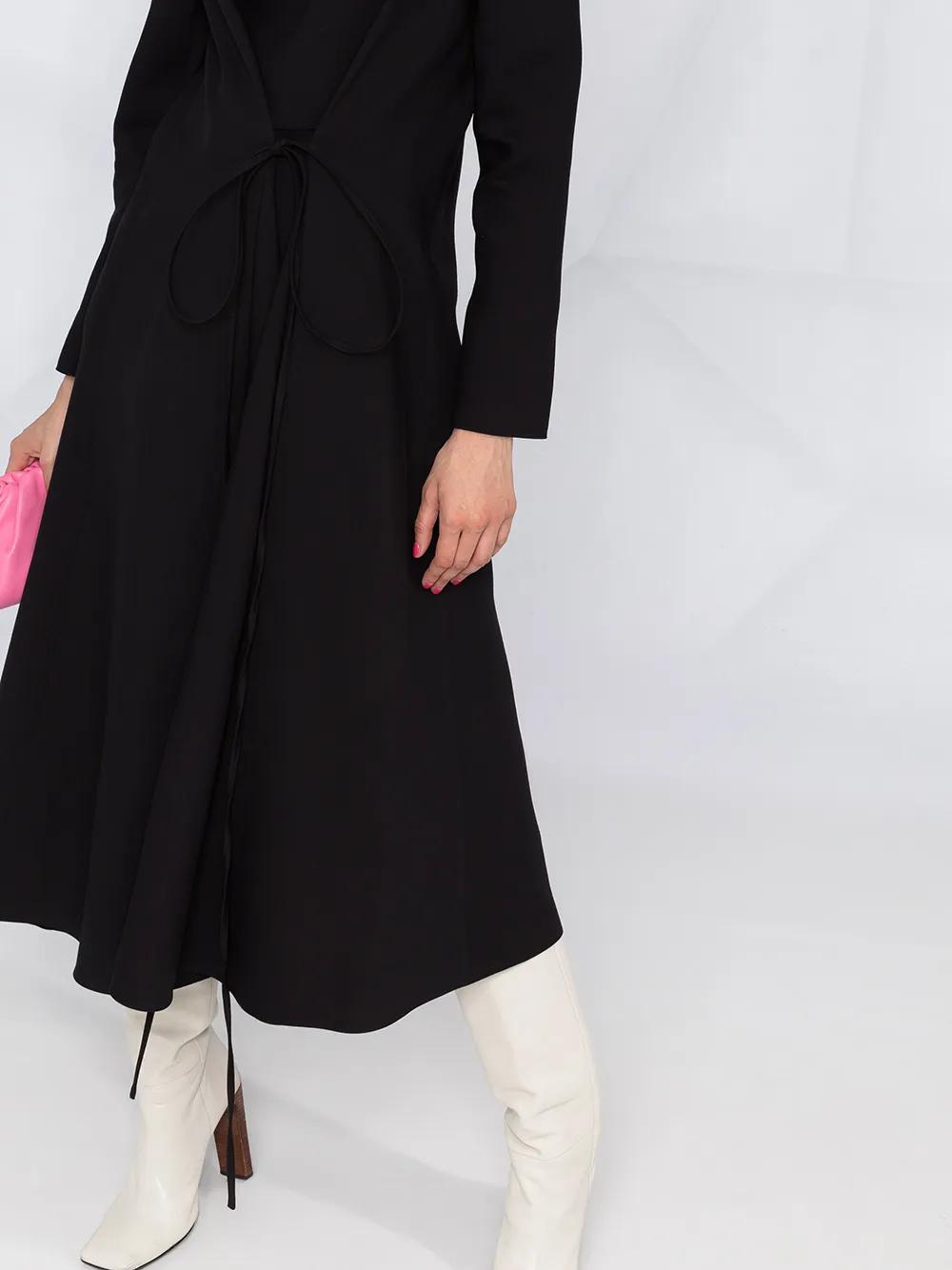 Valentino Ready To Wear black virgin wool blend round neck central rear vent belted waist long sleeves mid-length