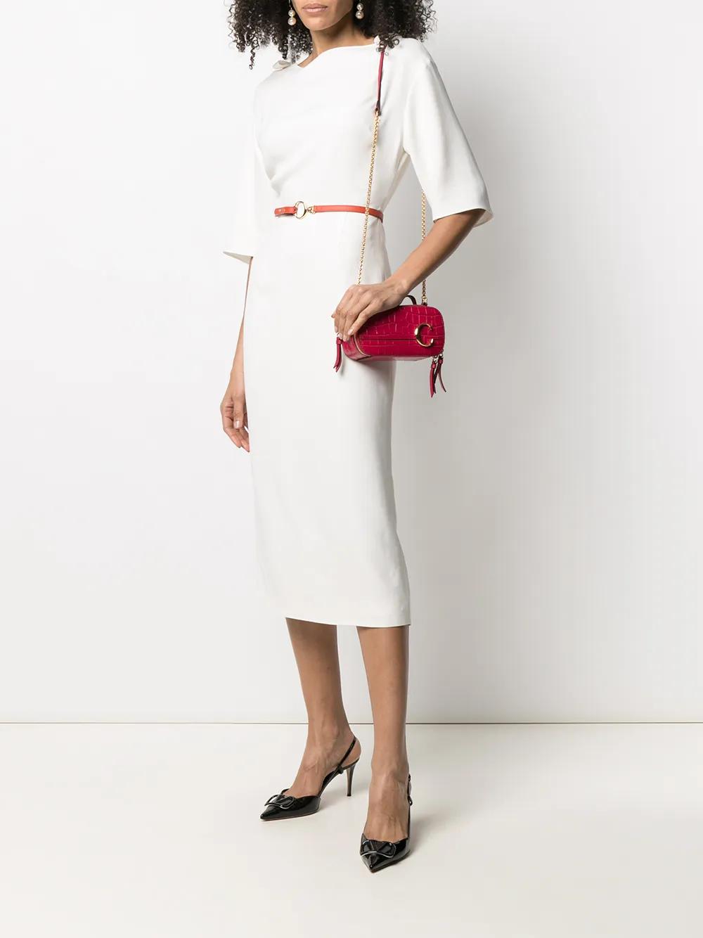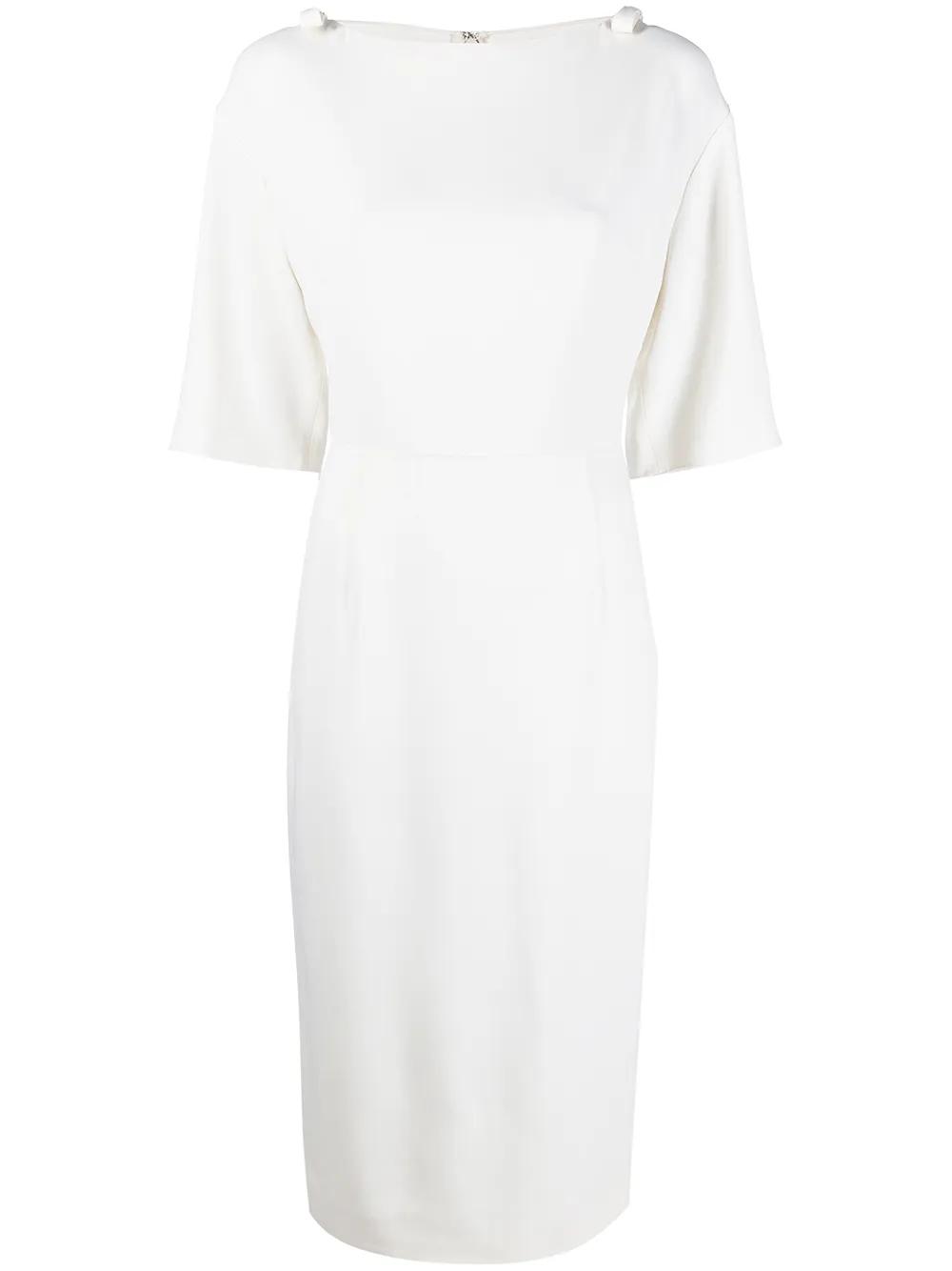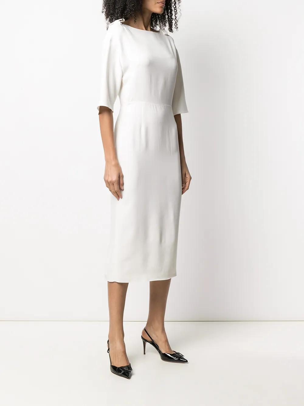 Valentino Ready To Wear white bow detailing round neck half-length sleeves pencil design mid-calf length