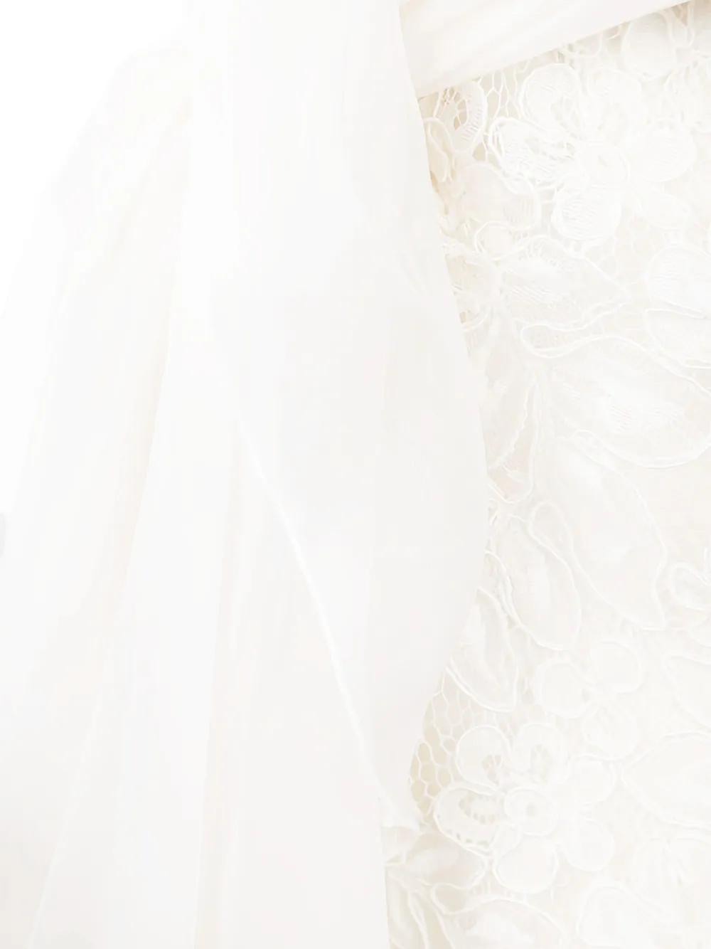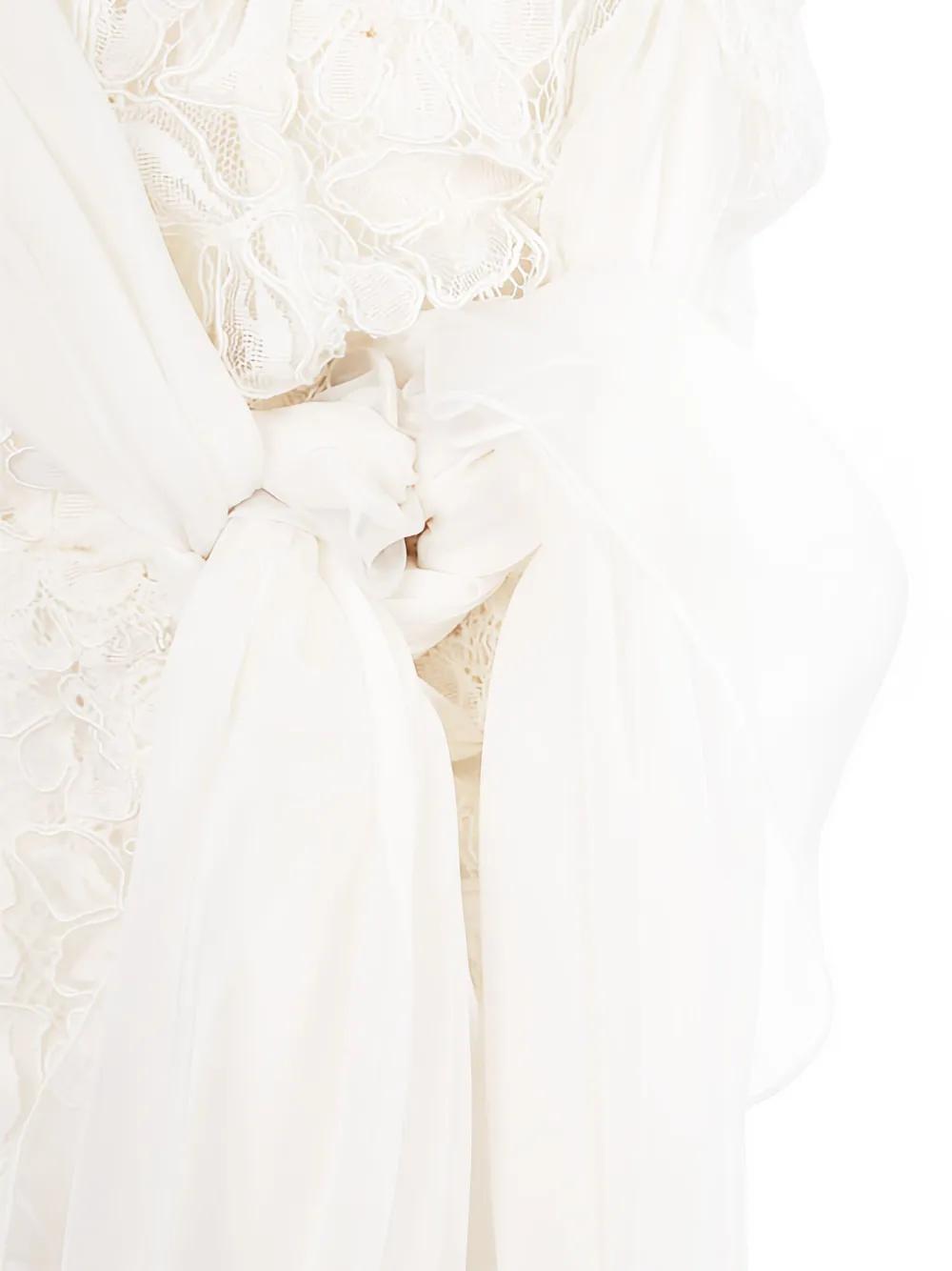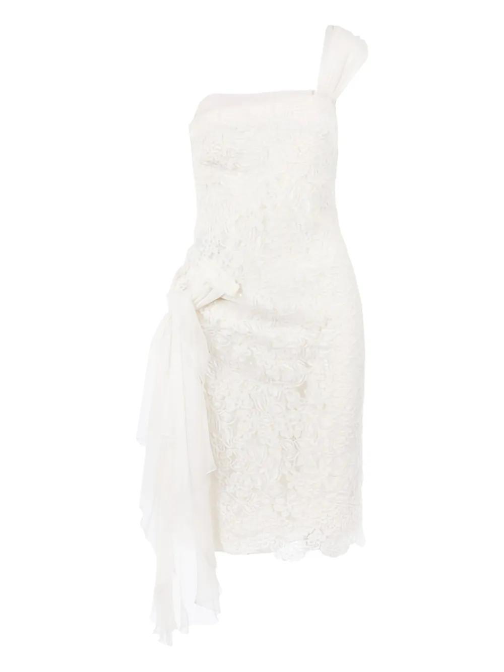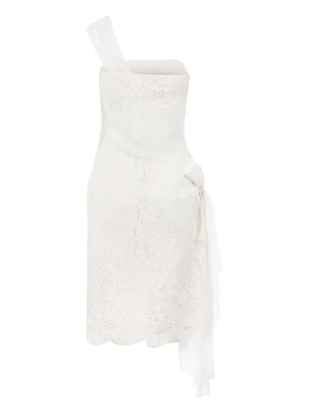 Valentino Ready To Wear white floral lace one-shoulder design decorative chiffon knot scalloped hemline