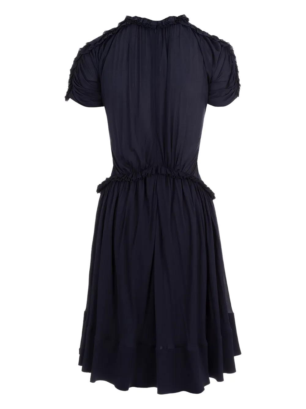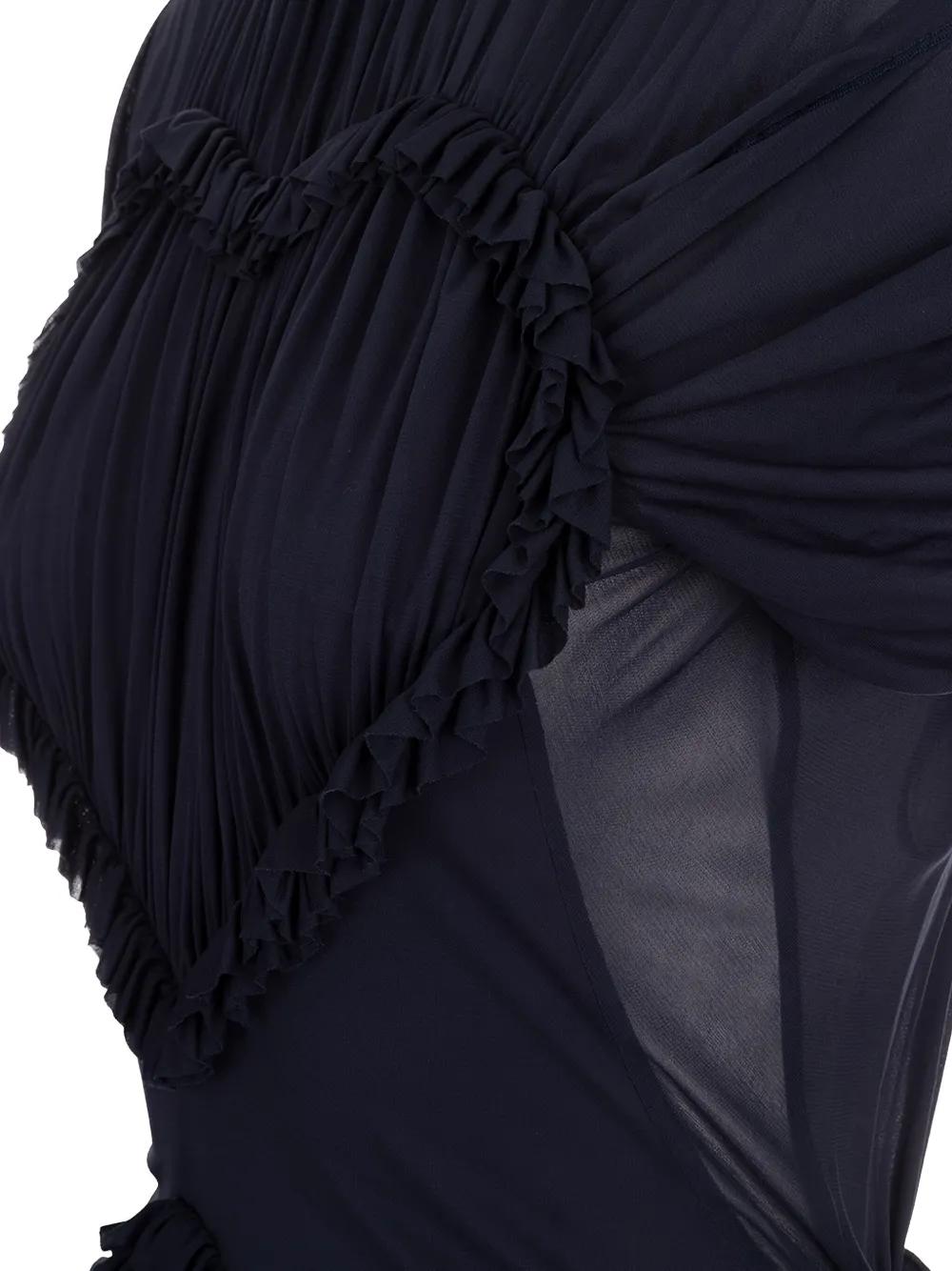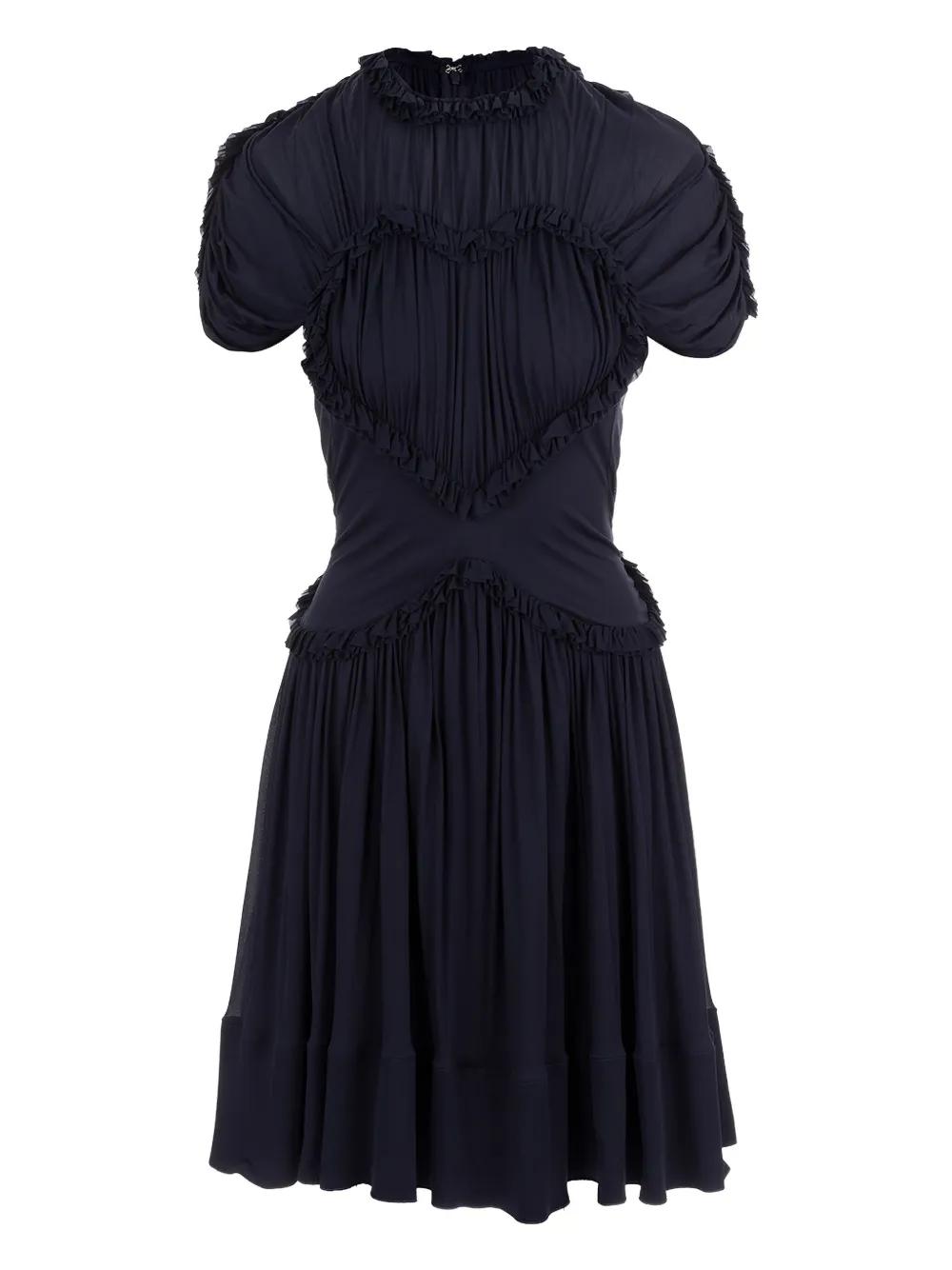 dark blue gathered detailing ruffled trim short sleeves heart shape detail pleated