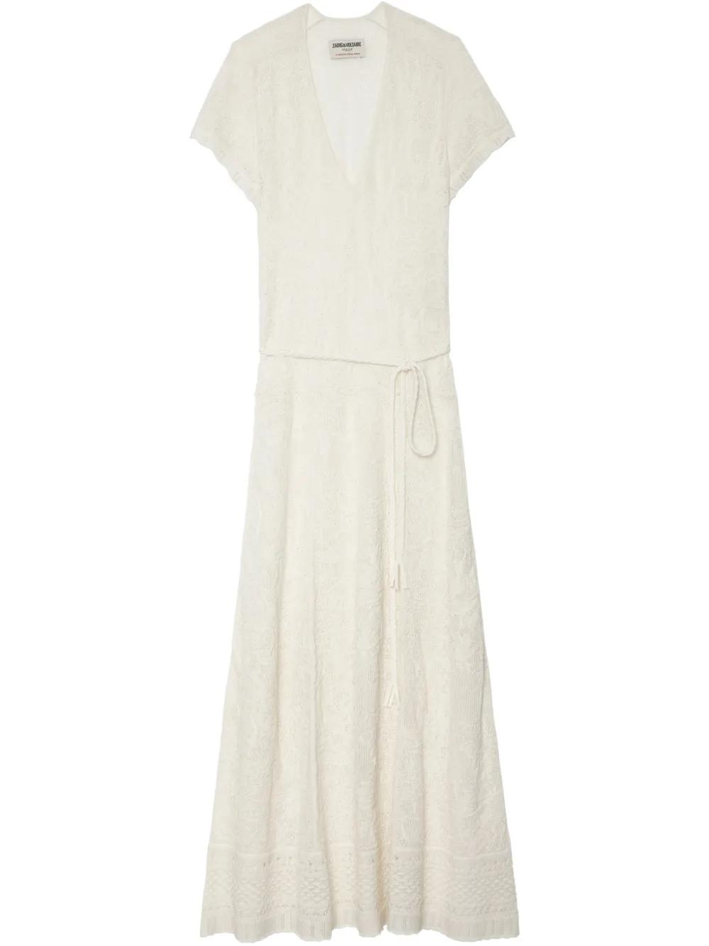 hazelnut lace construction pleated skirt V-neck long sleeves belt