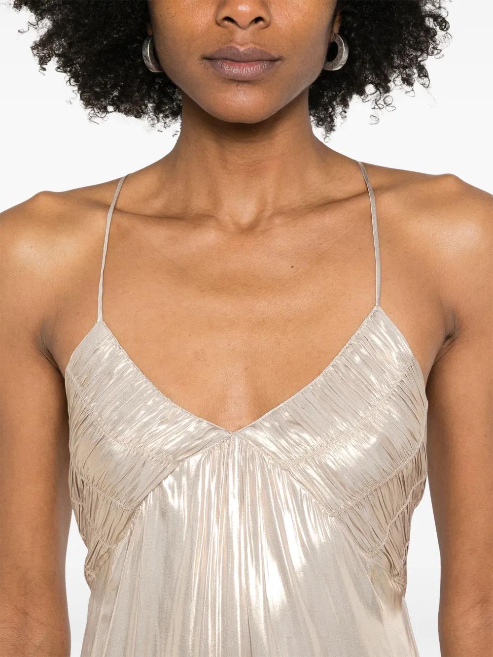 gold-tone adjustable shoulder straps rear criss-cross straps gathered detailing