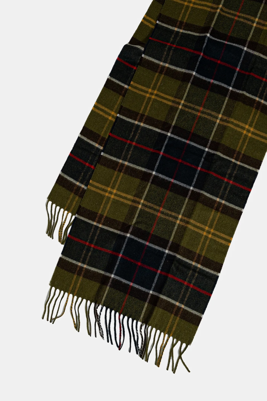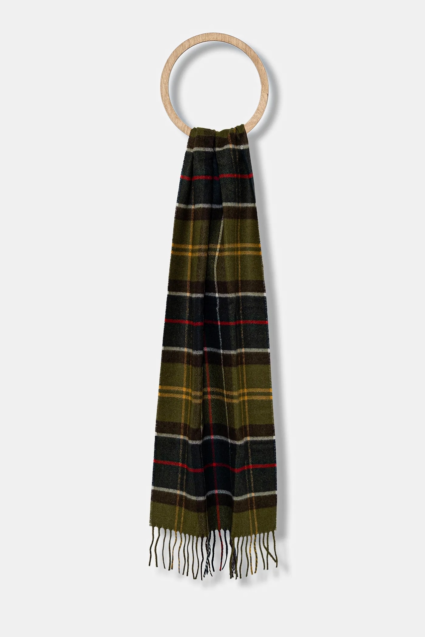 Barbour szalik z domieszką wełny kolor zielony wzorzysty