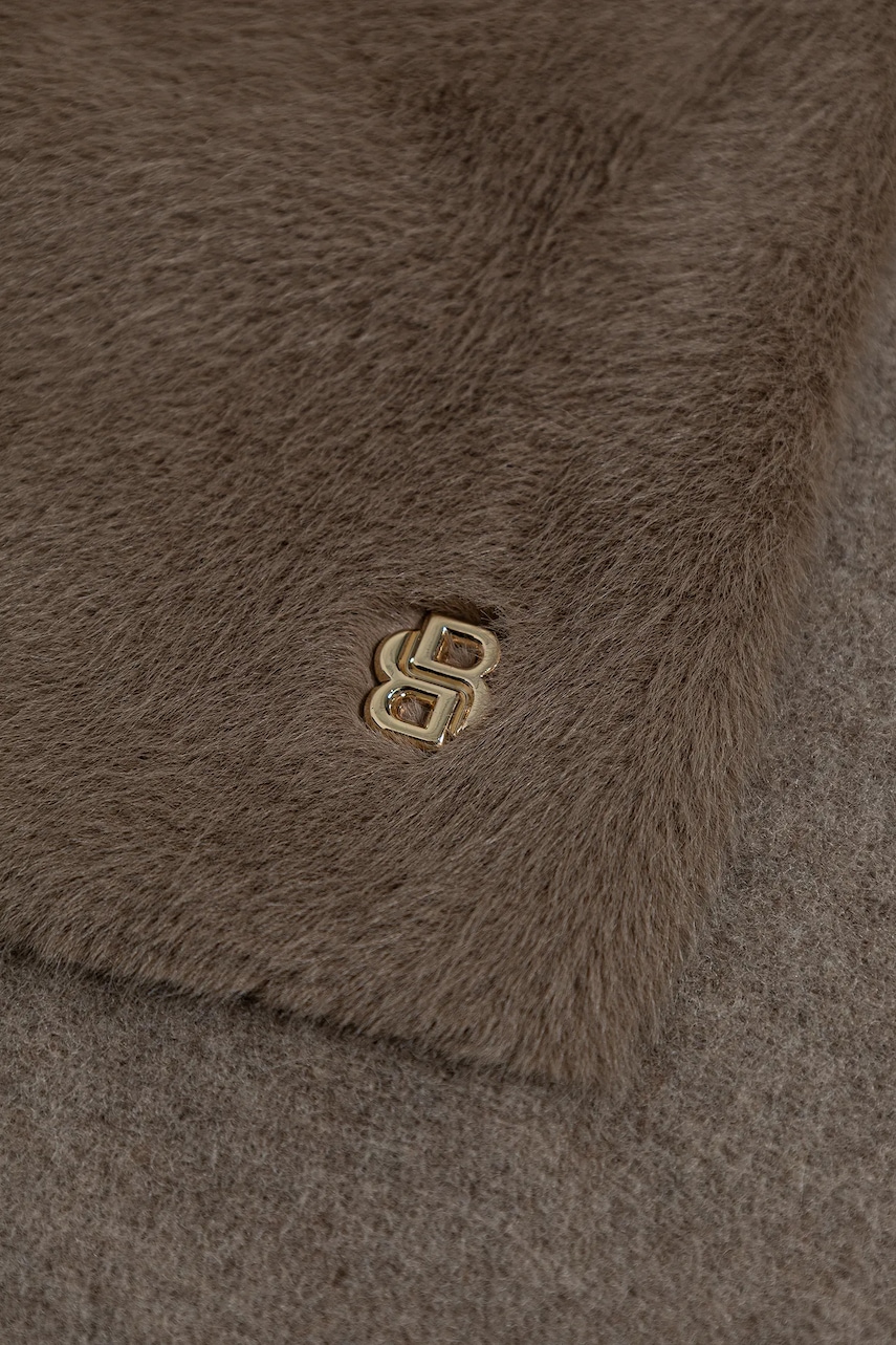 BOSS szalik z dodatkiem wełny damski kolor brązowy gładki 50552112