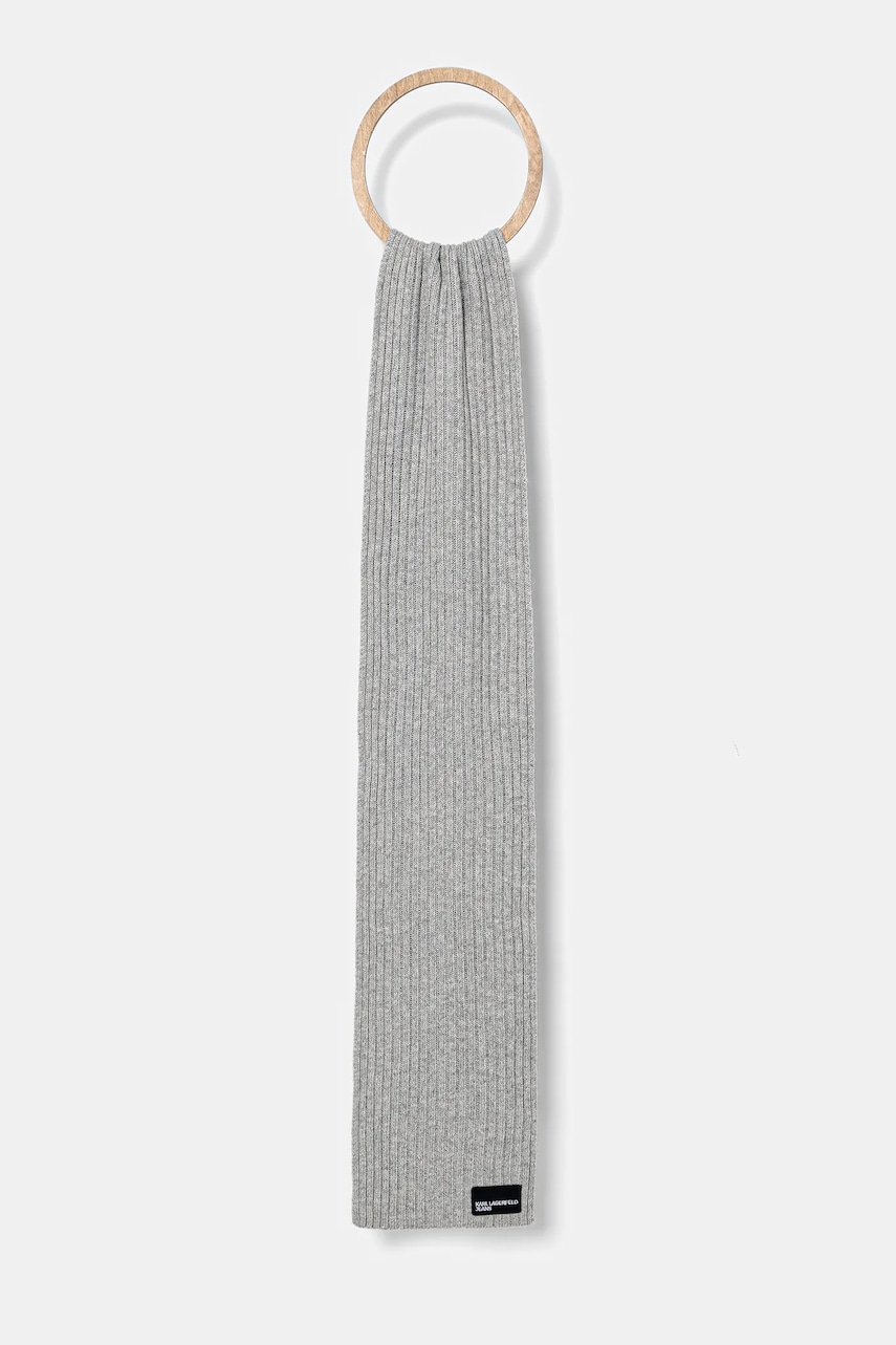 Karl Lagerfeld Jeans szalik z domieszką wełny kolor szary melanżowy A4W33084
