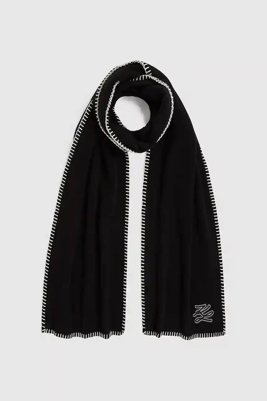 Karl Lagerfeld szalik wełniany K/AUTOGRAPH damski kolor czarny gładki A4W33114