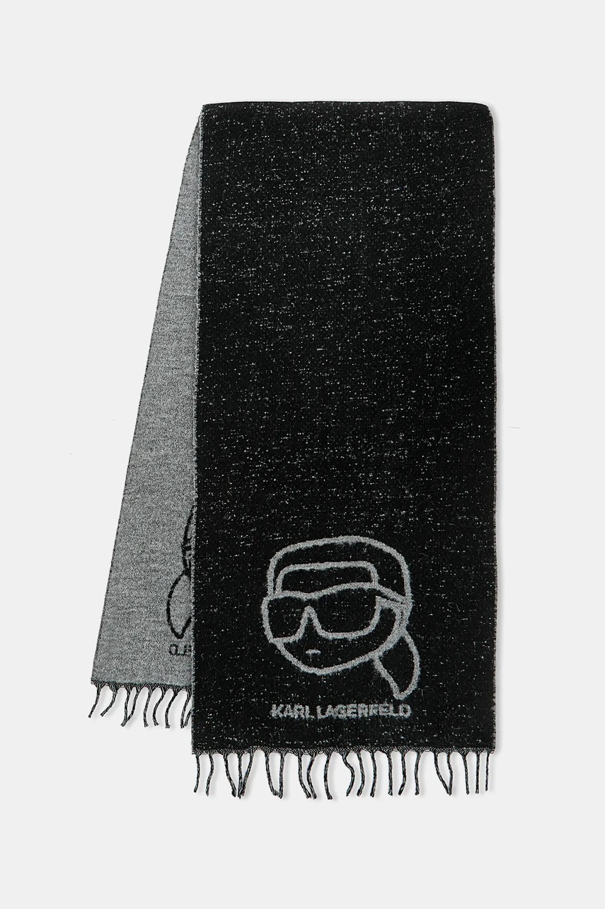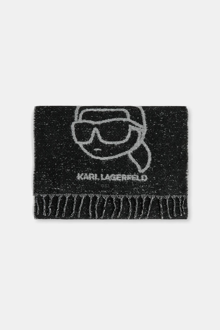Karl Lagerfeld szalik z dodatkiem wełny IKON damski kolor czarny wzorzysty A4W33051
