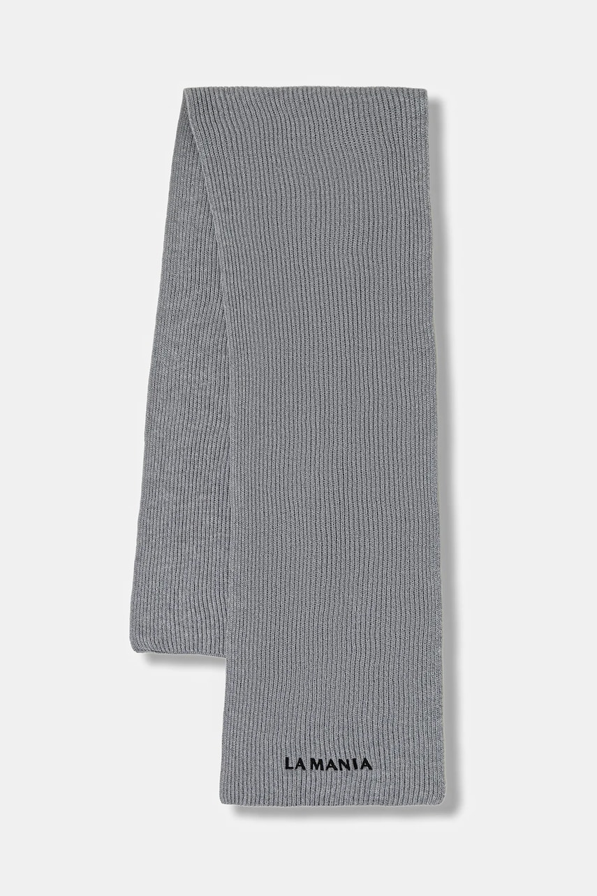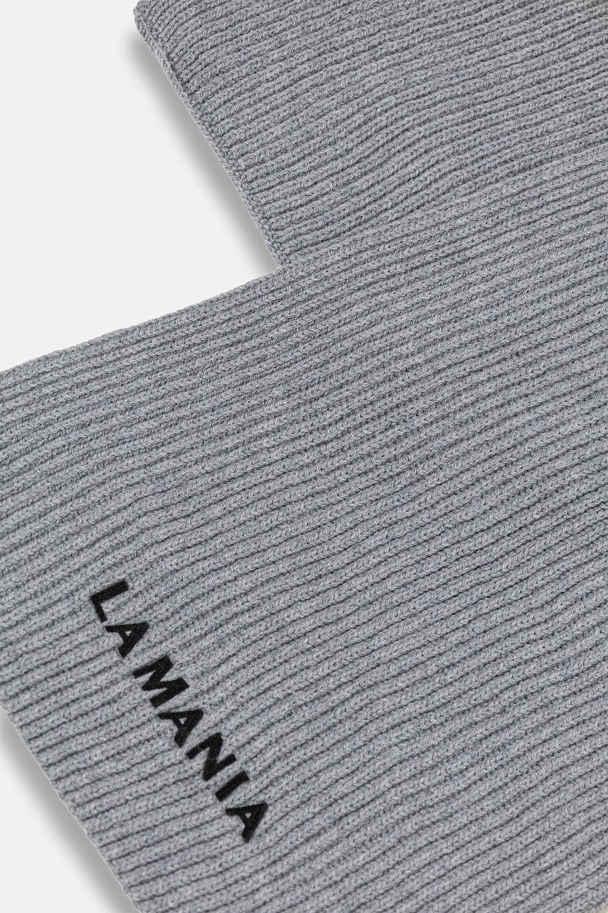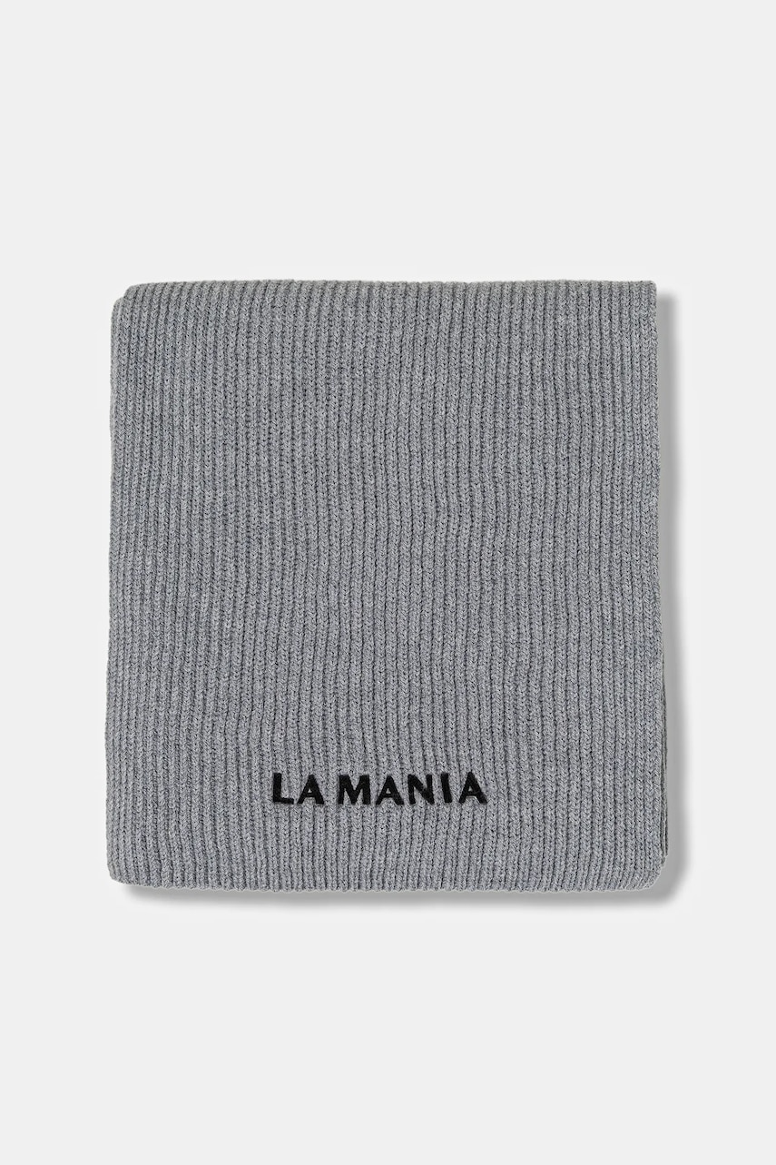 La Mania szalik wełniany MERINOWOOL damski kolor szary gładki MERINOWOOL