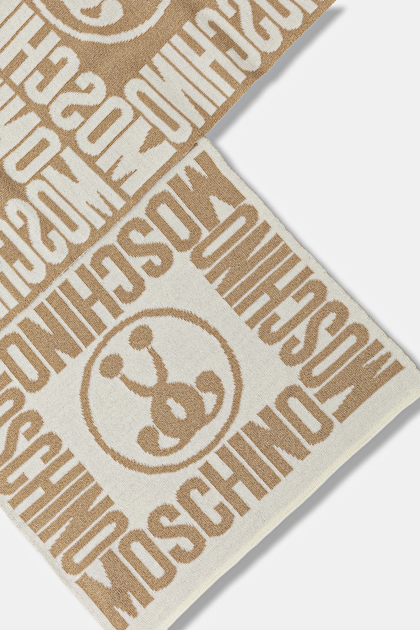 Moschino szalik z dodatkiem wełny kolor beżowy wzorzysty M2966 30623