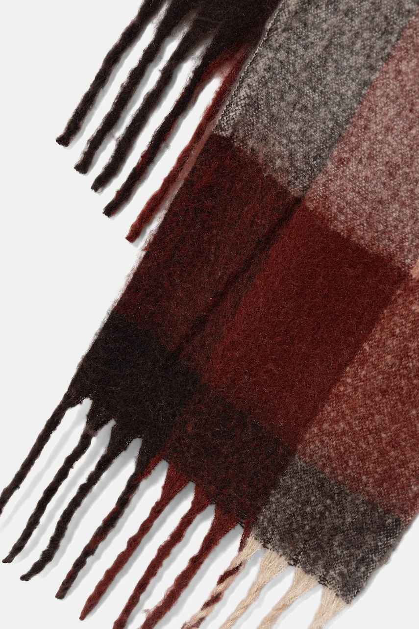 - Model z ozdobnymi frędzlami. - Wymiary szalika: 36 x 210 cm.