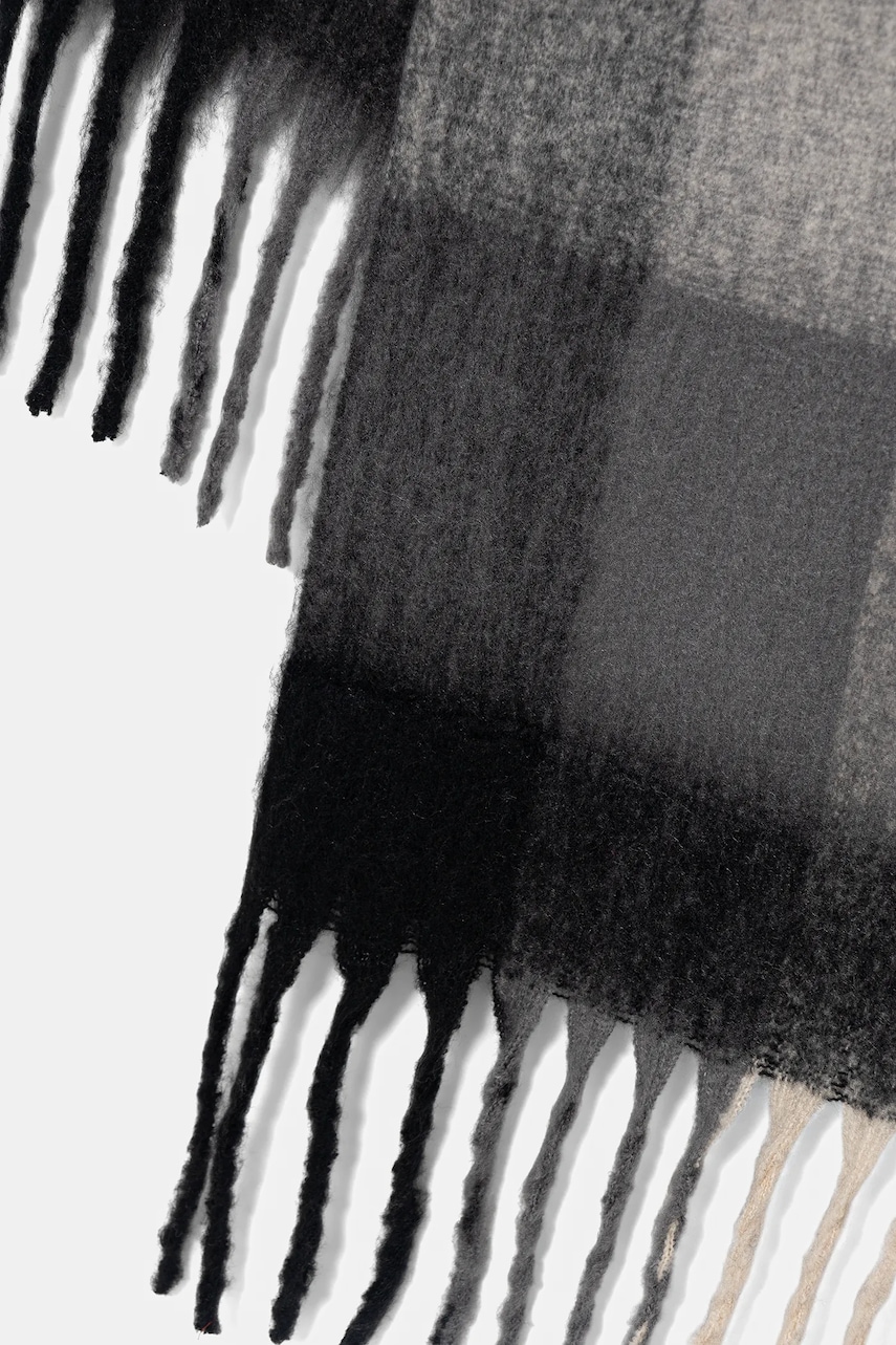 - Model z ozdobnymi frędzlami. - Wymiary szalika: 36 x 210 cm.