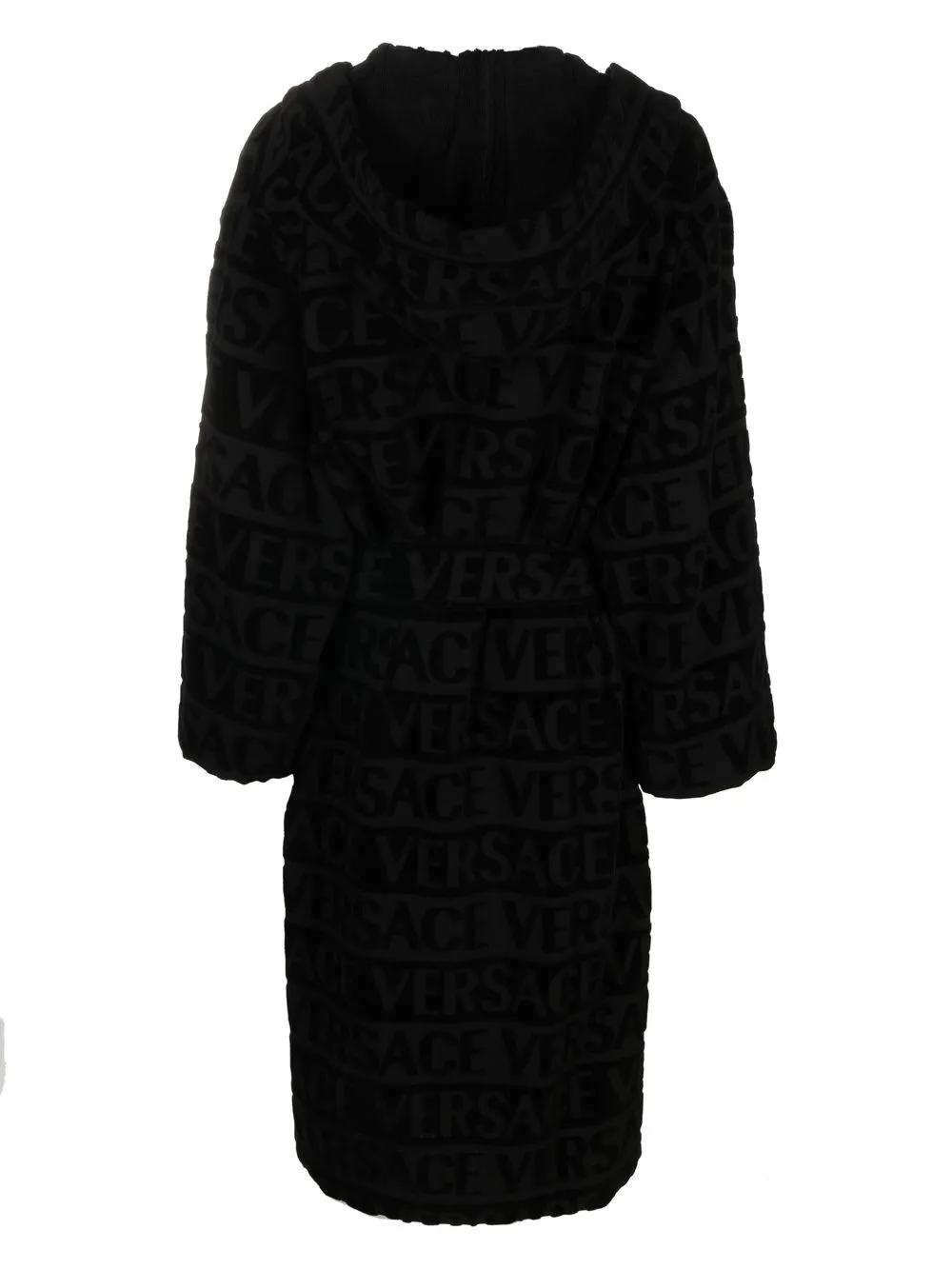 Versace logo towelling belted robe - Black