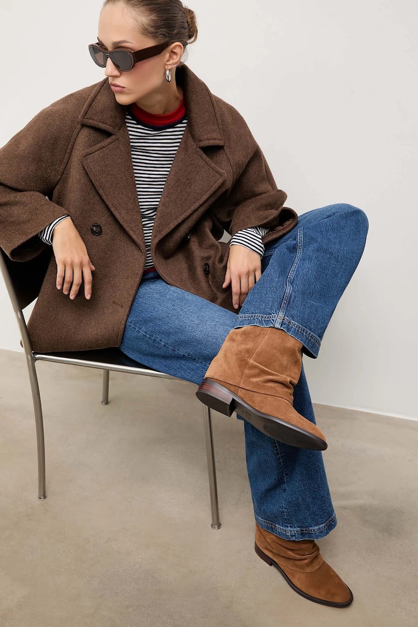 Answear.LAB botki zamszowe kolor brązowy na płaskim obcasie lekko ocieplone