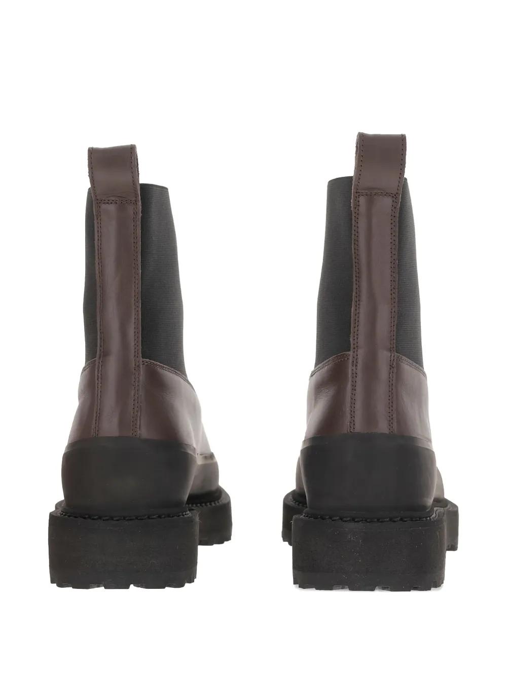 brown leather round toe chunky sole rear loop elastic side panels