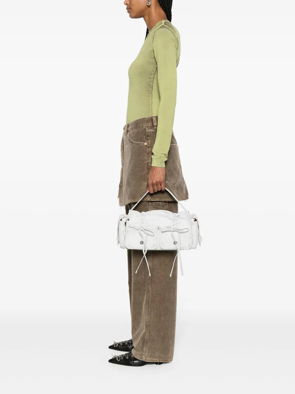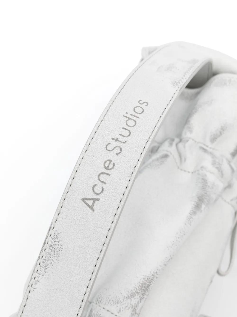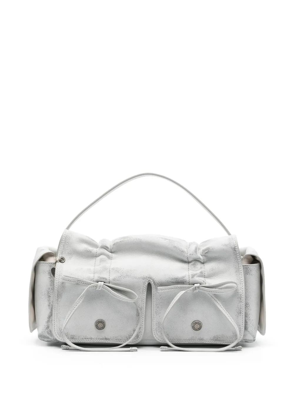 white/grey calf leather distressed finish single top handle logo-embossed strap two side flap pockets heart-shaped logo charm main compartment internal patch pocket internal logo patch front flap closure with magnetic fastening